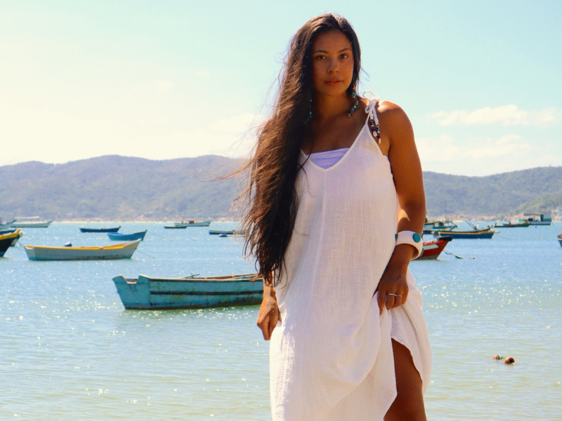 Vestido Curto 100% Algodão Gaze Marrakesh Marrom Yacamim E21