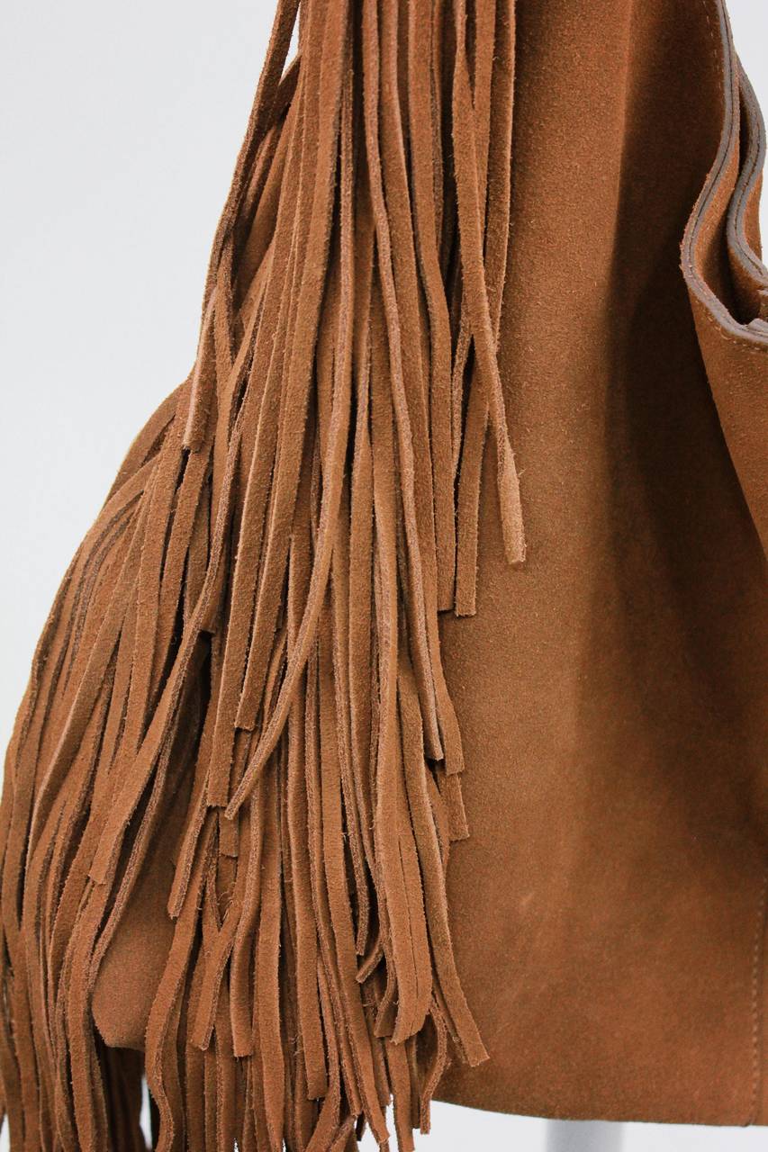 Bolsa De Couro Maxi Franjas Marrom Claro Yacamim #529