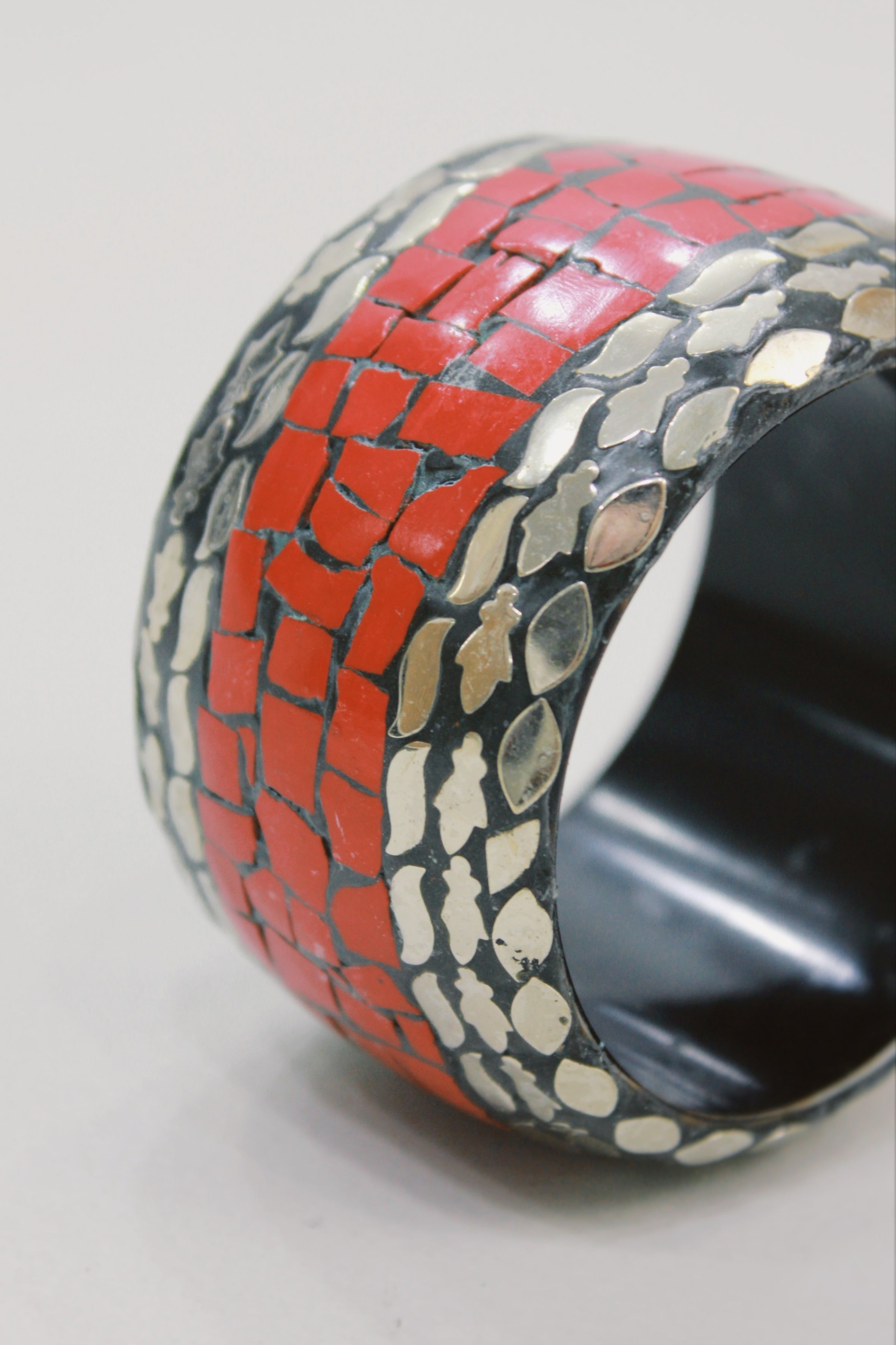 Pulseira Bracelete Largo De Metal Com Pedras Yacamim #583