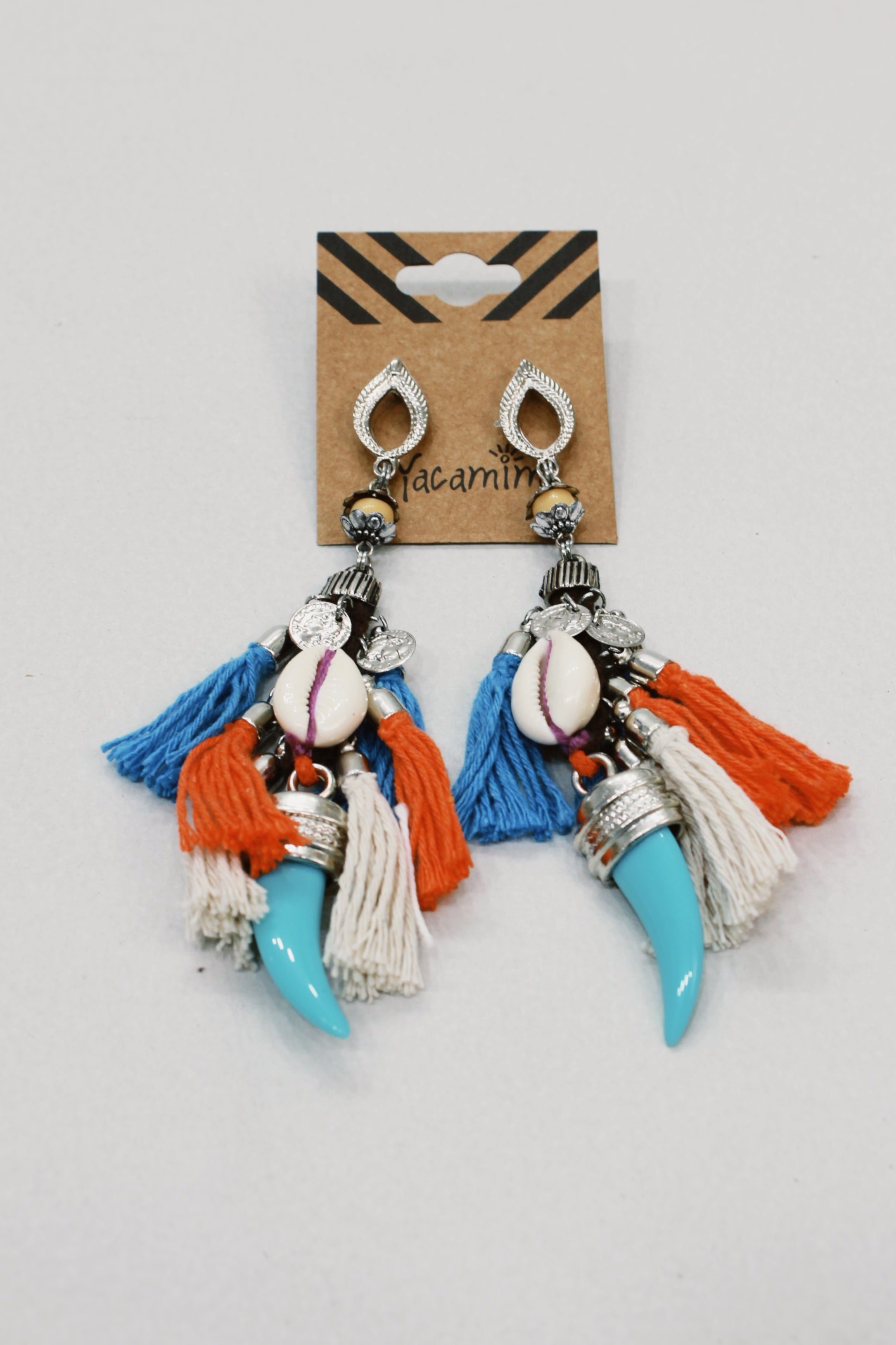 Brinco Artesanal Com Pompons E Conchinhas Yacamim #612