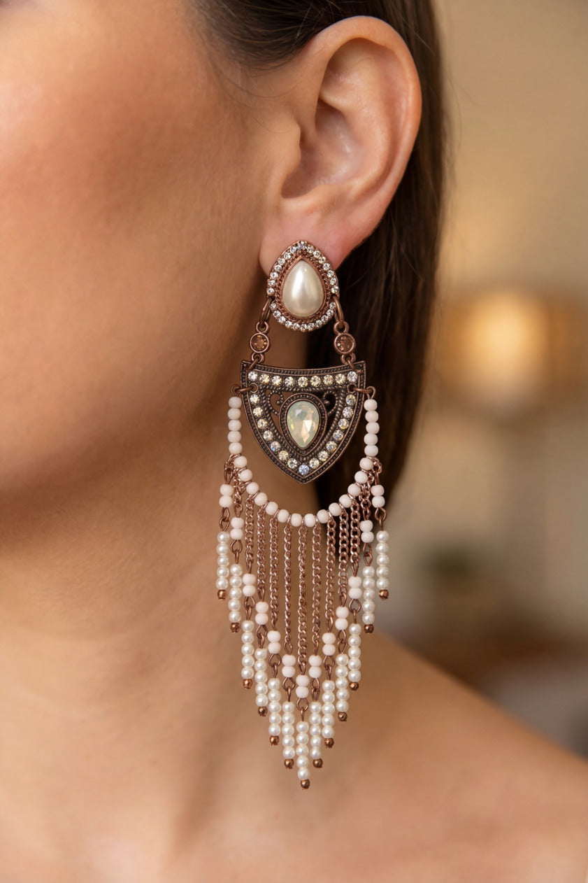 Brinco artesanal com detalhes de miçangas. Produto revendido pela marca Yacamim.