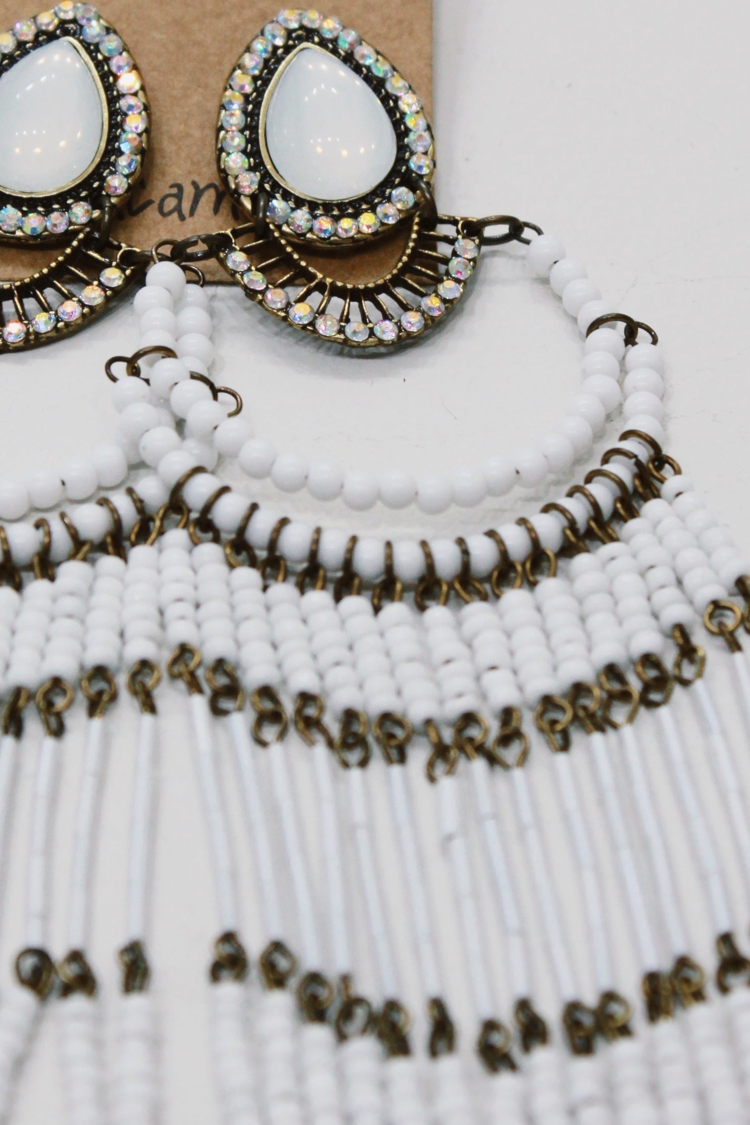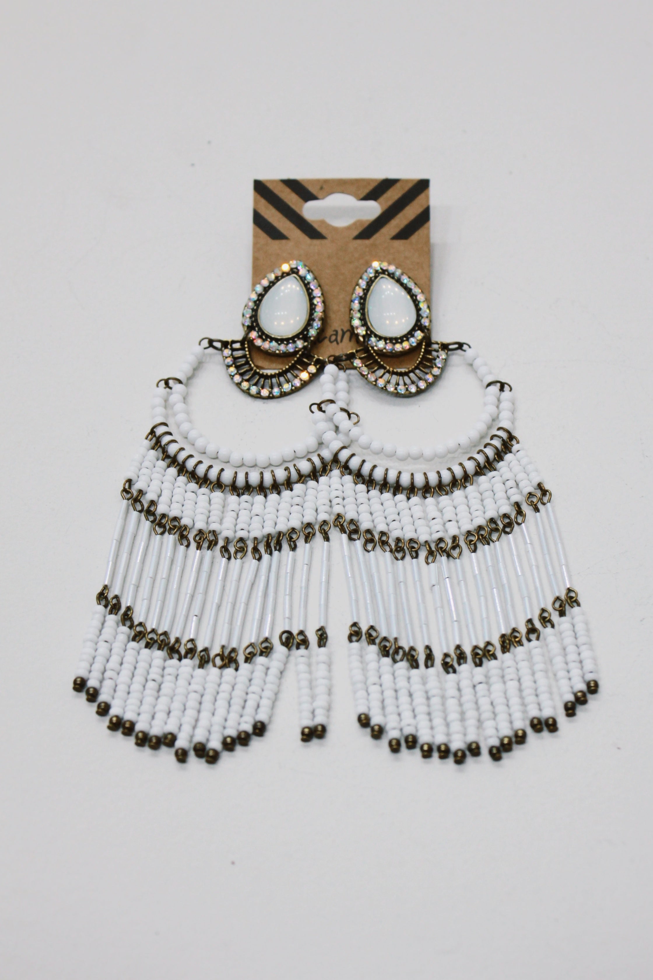 Brinco Artesanal De Miçangas Branco Yacamim #686