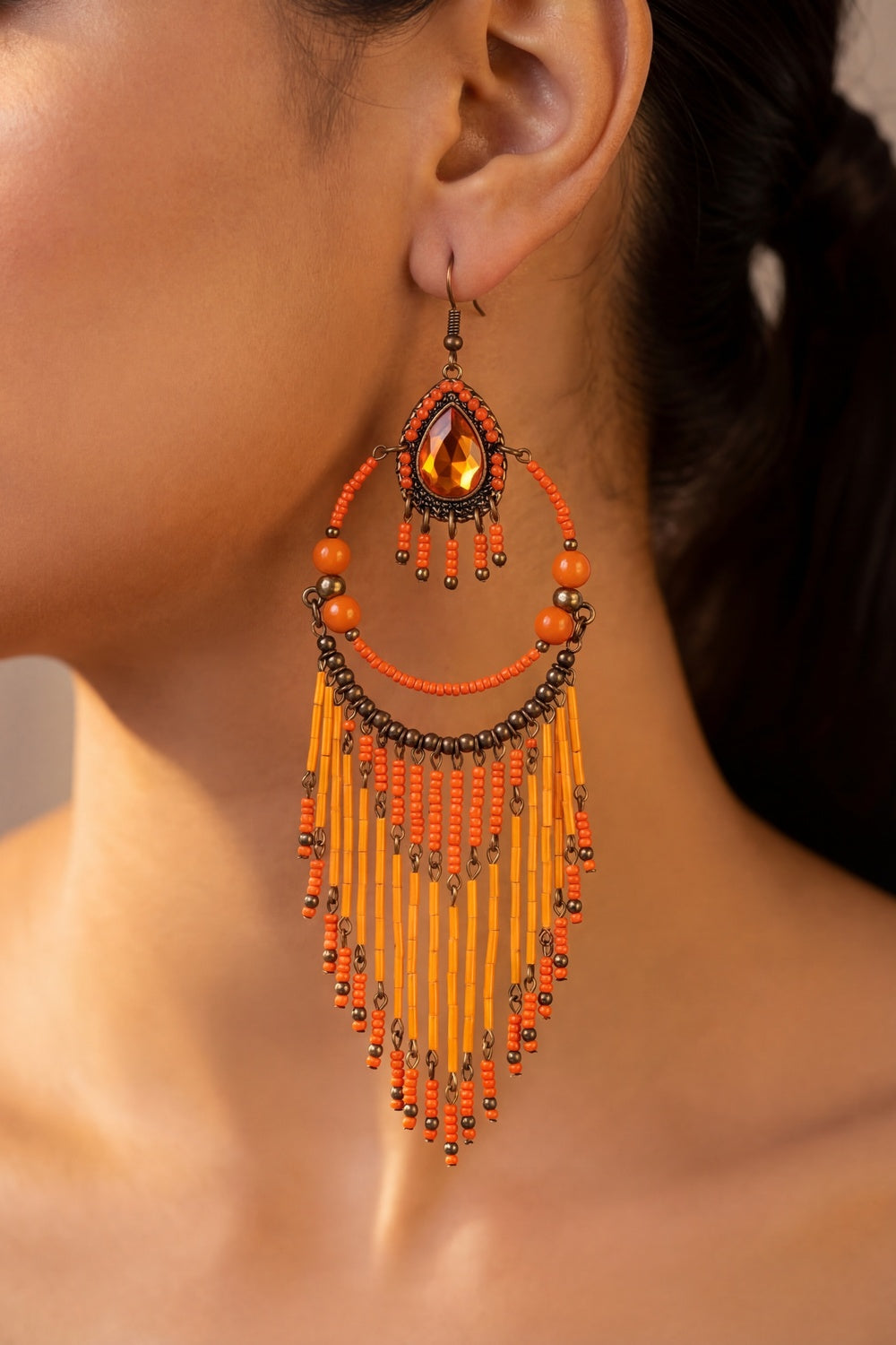 Brinco Artesanal De Miçangas Laranjas Yacamim #966