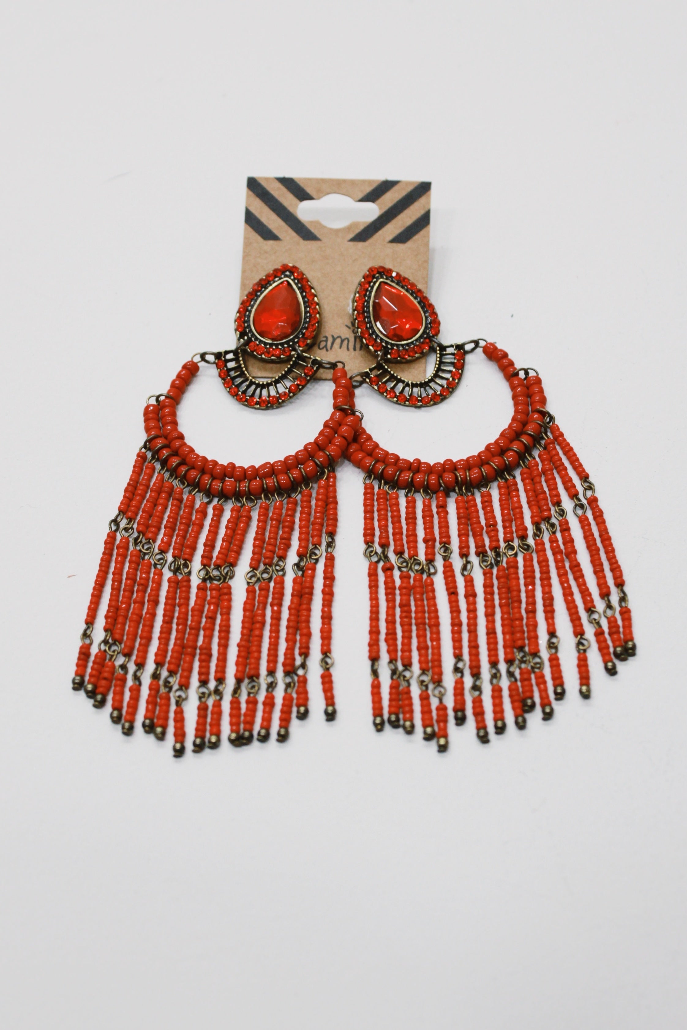 Brinco Artesanal De Miçangas Vermelho Yacamim #680
