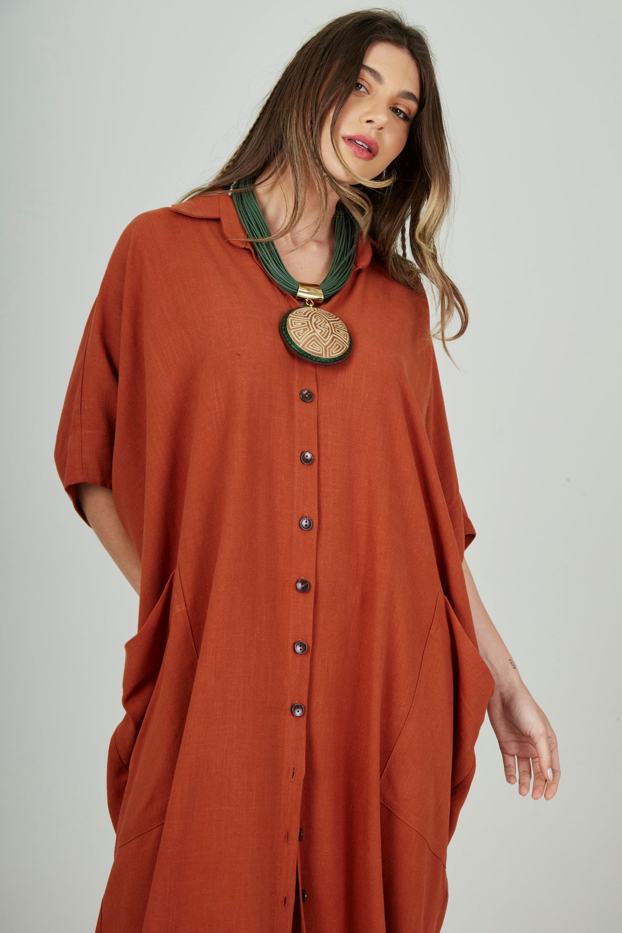Chemise Midi De Viscolinho Terracota Yacamim L6