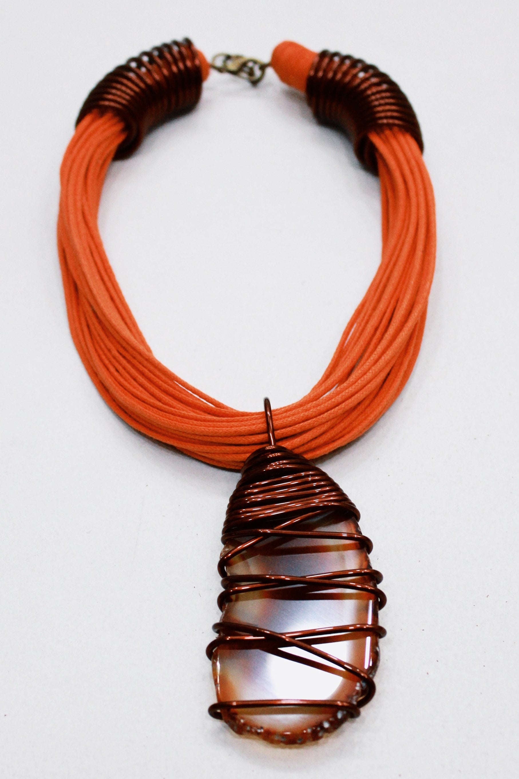 Colar Artesanal Com Pedra Ágata Yacamim #535
