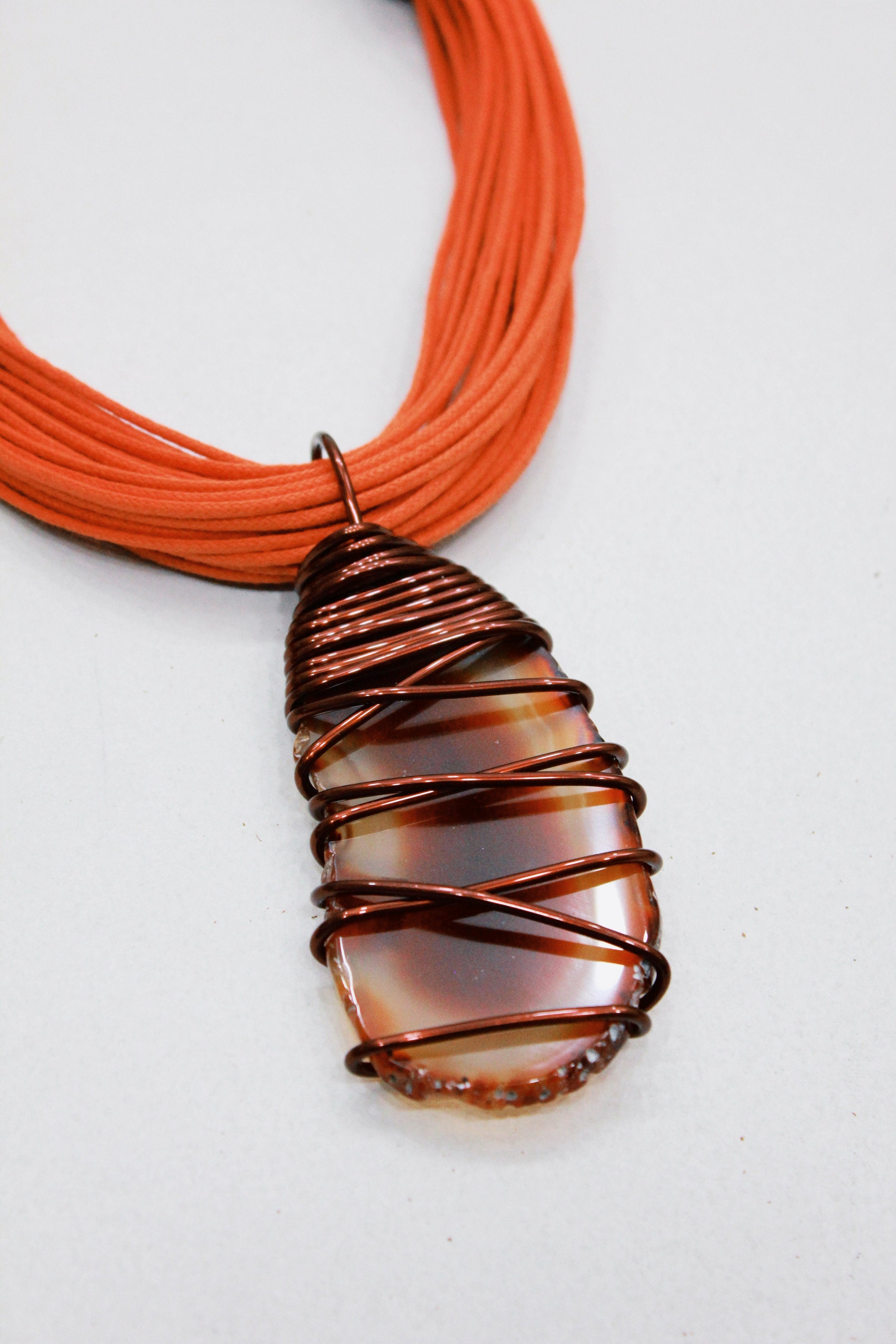 Produzido com pedras ágatas e alça em fio de algodão, este colar une beleza e autenticidade, A ágata é conhecida por suas cores singulares e pelo simbolismo de equilíbrio e proteção, enquanto o fio de algodão proporciona leveza, conforto e resistência, reforçando o valor do trabalho manual.