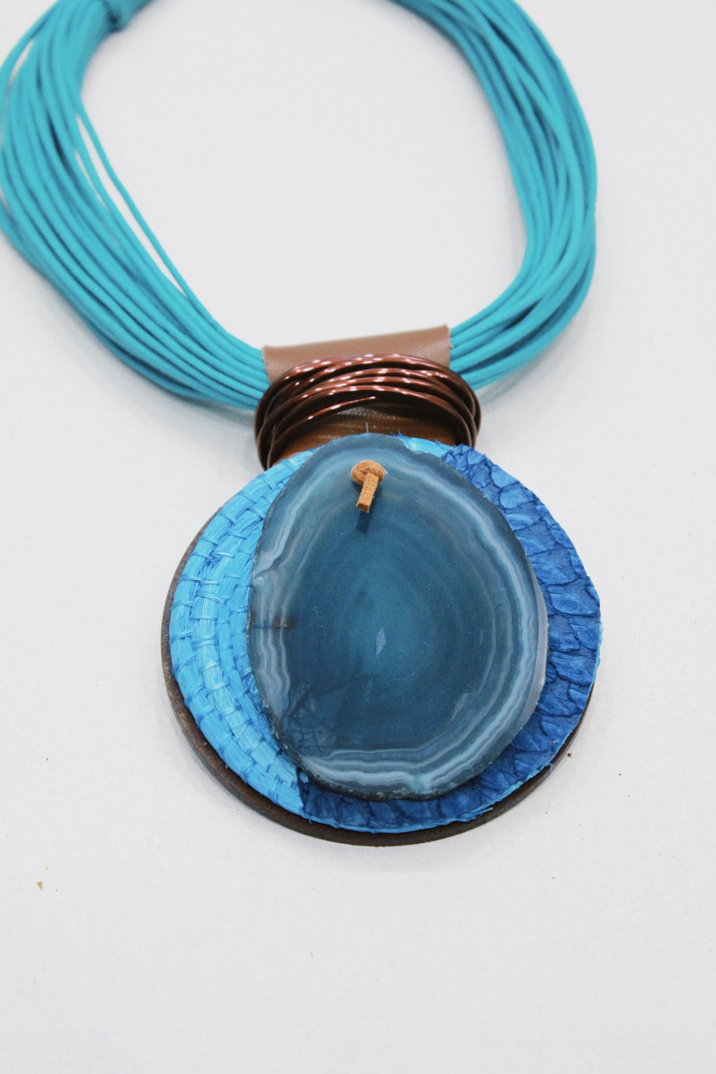 Produzido com pedras ágatas e alça em fio de algodão, este colar une beleza e autenticidade, A ágata é conhecida por suas cores singulares e pelo simbolismo de equilíbrio e proteção, enquanto o fio de algodão proporciona leveza, conforto e resistência, reforçando o valor do trabalho manual.