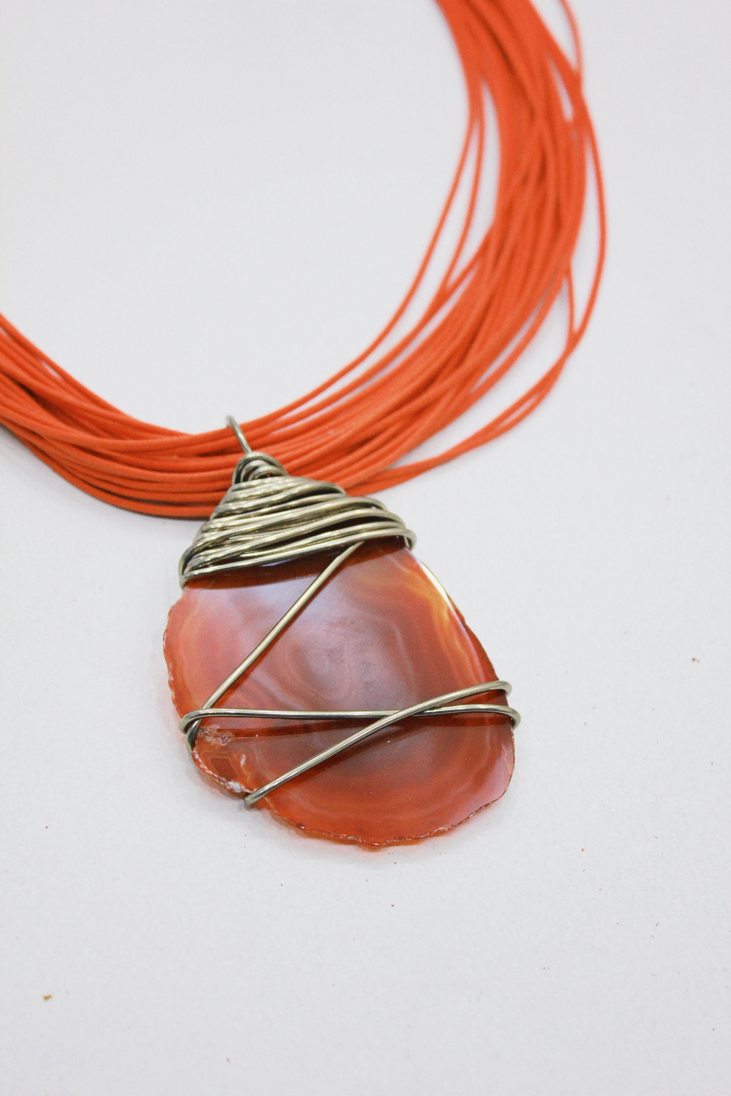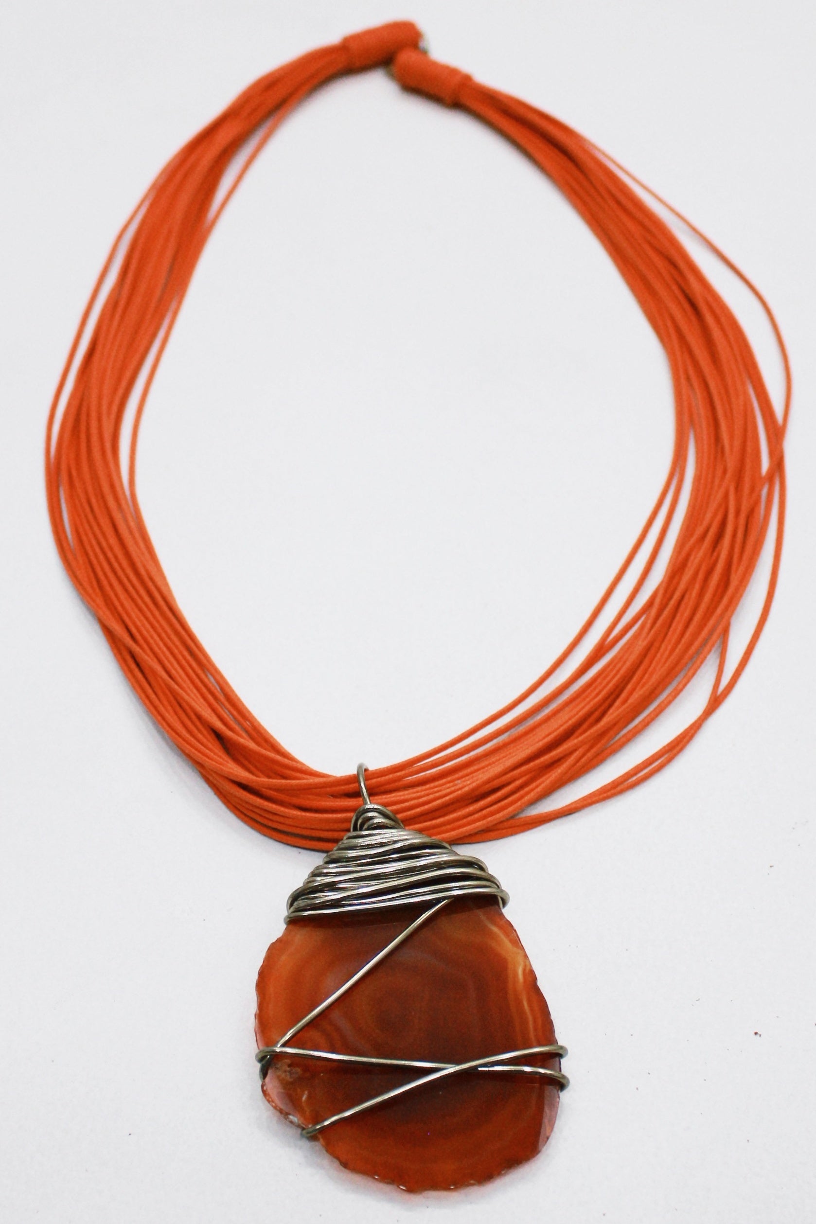 Produzido com pedras ágatas e alça em fio de algodão, este colar une beleza e autenticidade, A ágata é conhecida por suas cores singulares e pelo simbolismo de equilíbrio e proteção, enquanto o fio de algodão proporciona leveza, conforto e resistência, reforçando o valor do trabalho manual.