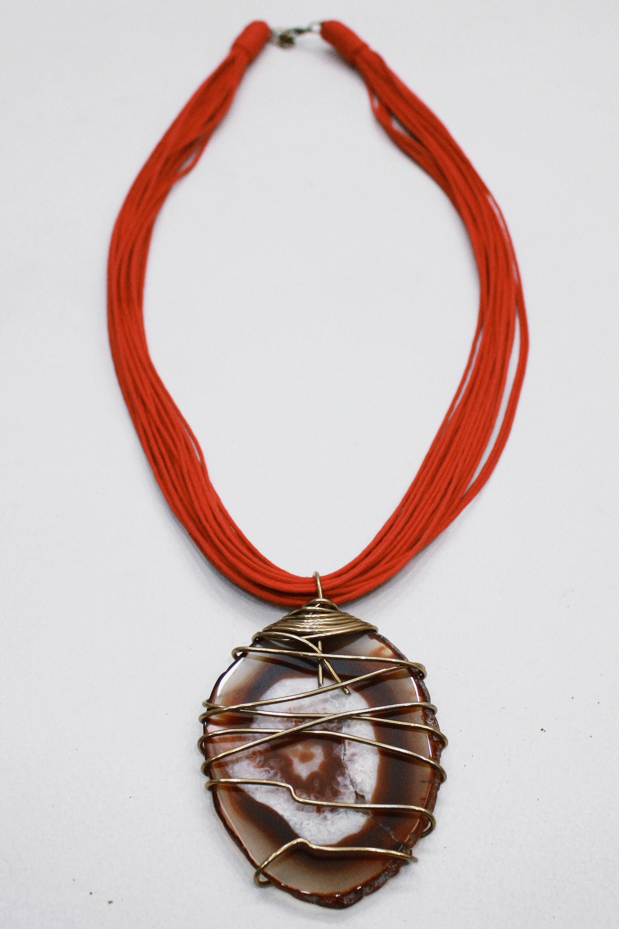 Colar Artesanal Longo Com Pedra Ágata Yacamim #541