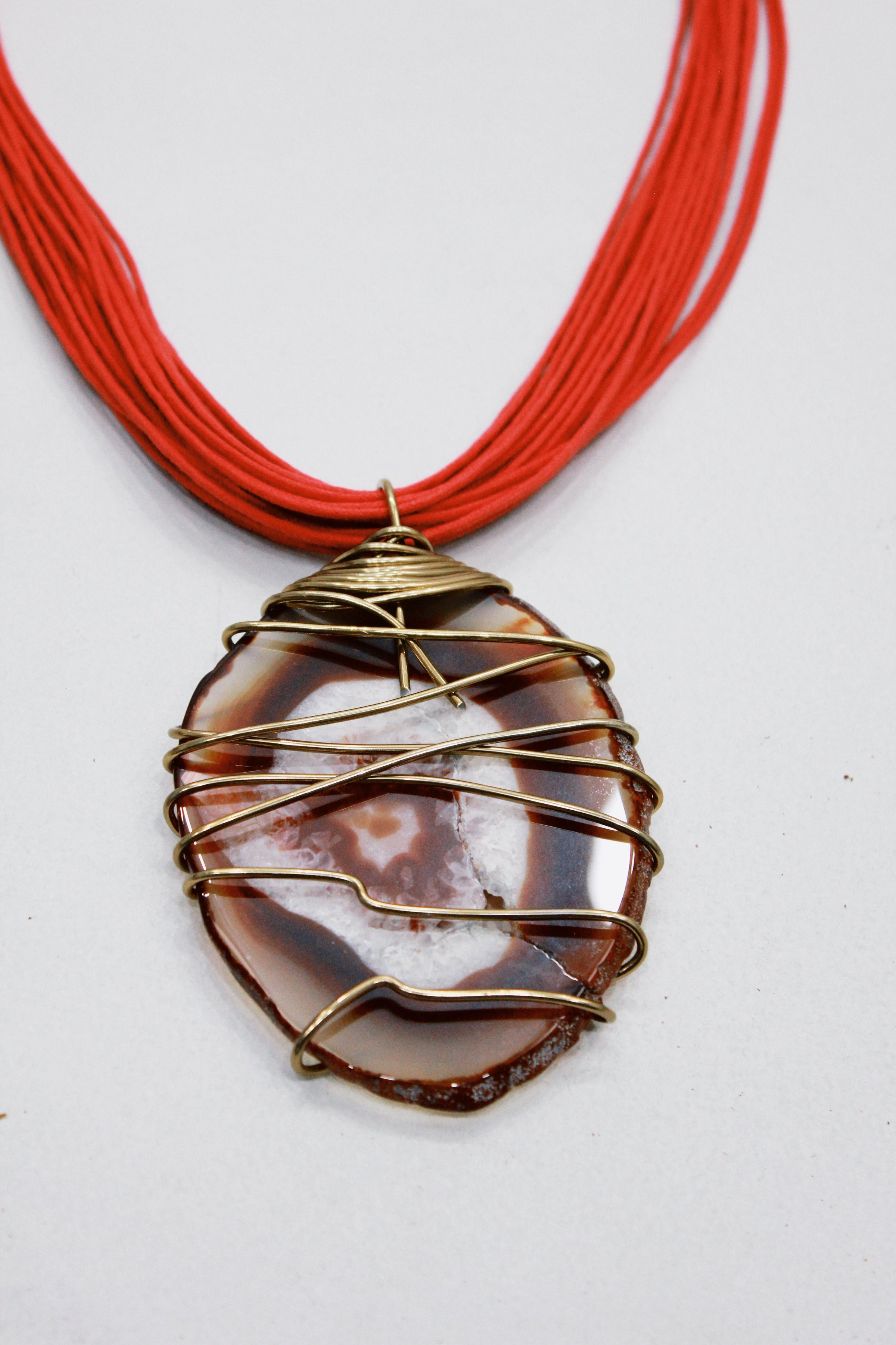 Produzido com pedras ágatas e alça em fio de algodão, este colar une beleza e autenticidade, A ágata é conhecida por suas cores singulares e pelo simbolismo de equilíbrio e proteção, enquanto o fio de algodão proporciona leveza, conforto e resistência, reforçando o valor do trabalho manual.
