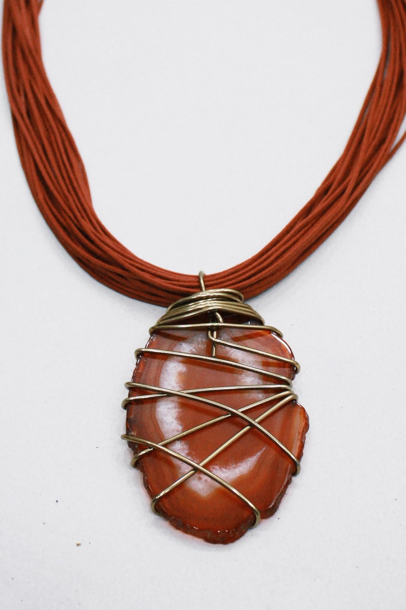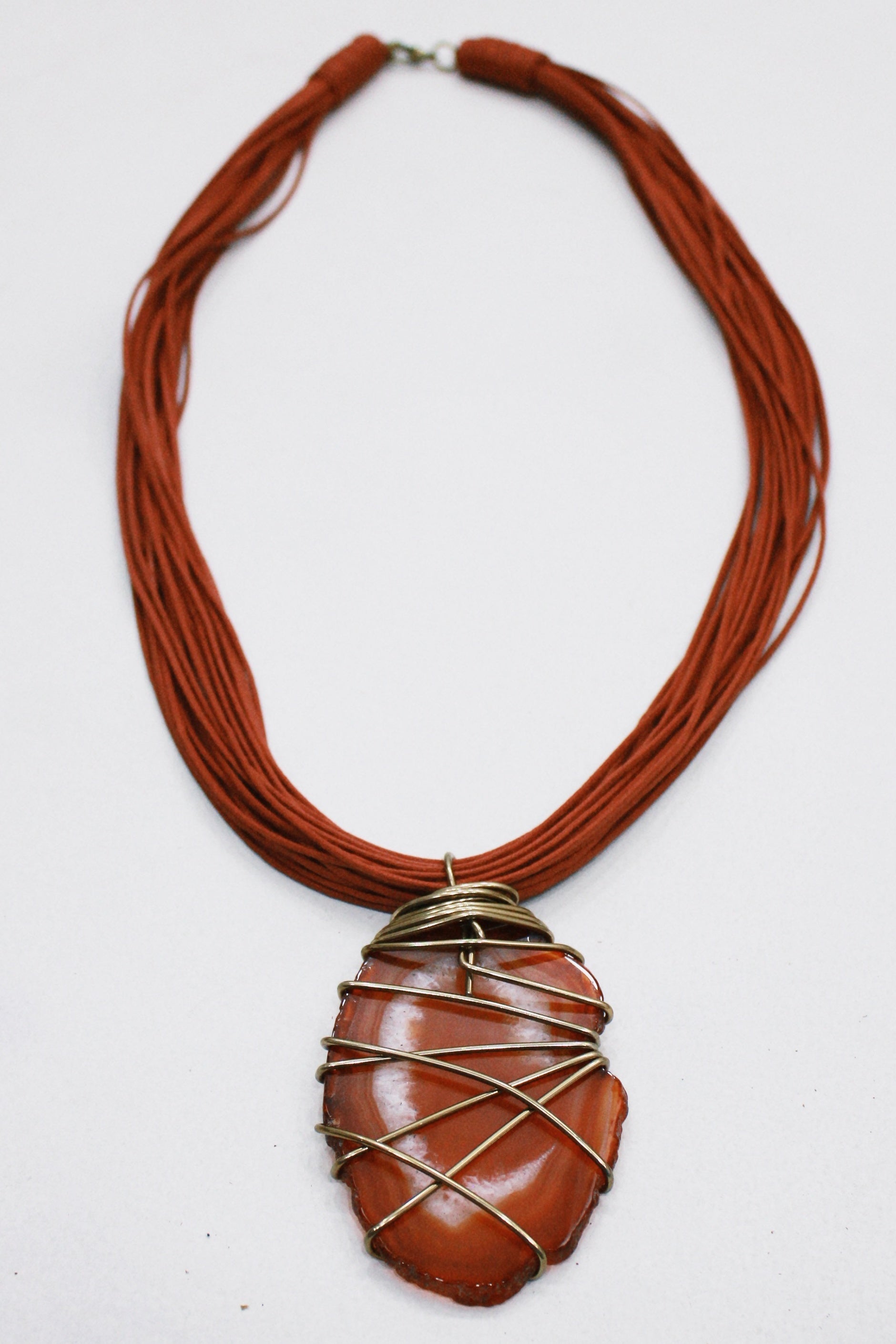 Colar Artesanal Longo Com Pedra Ágata Yacamim #542