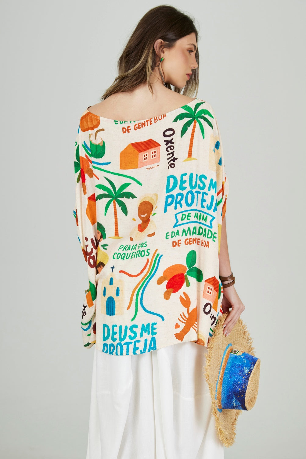 Bata Ampla Bege Estampado Coleção Bahêa Yacamim R6