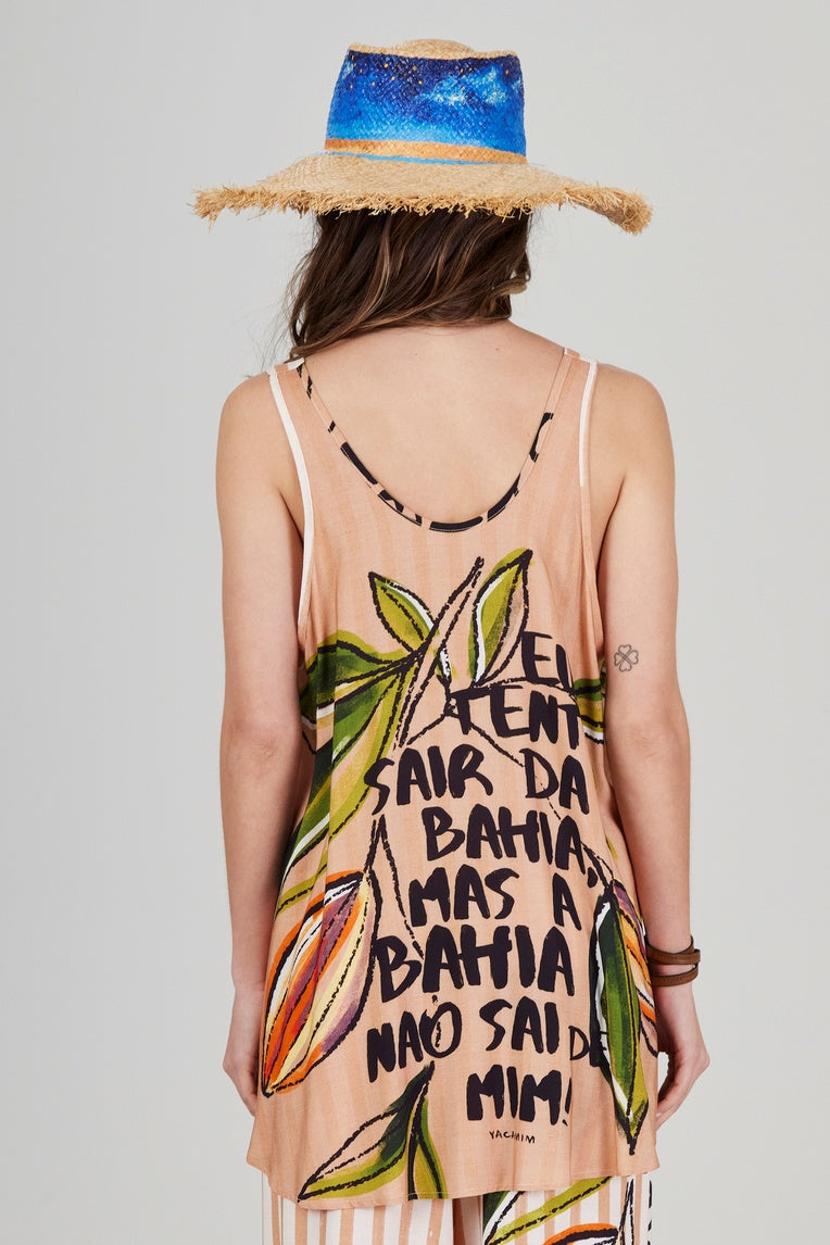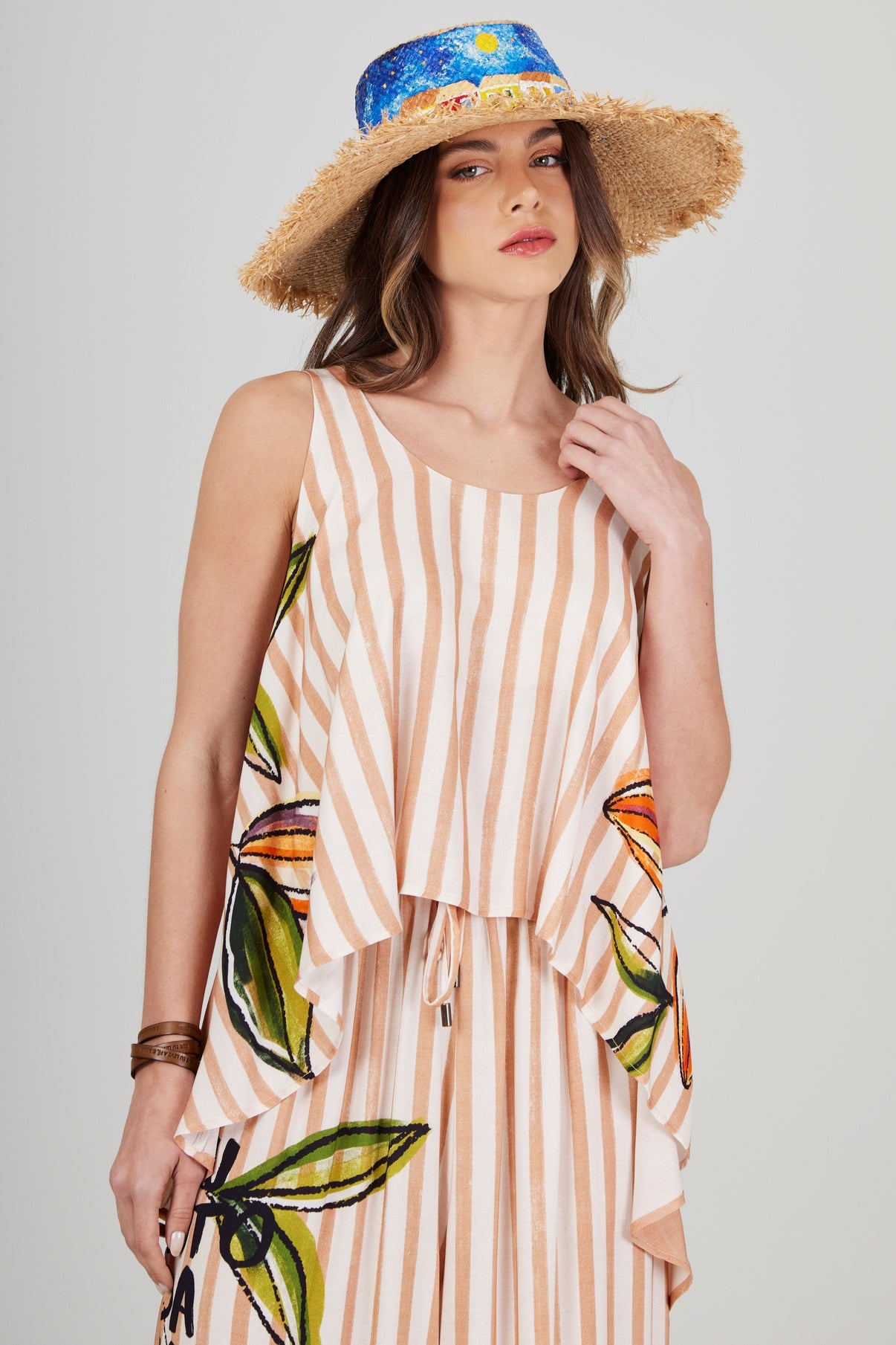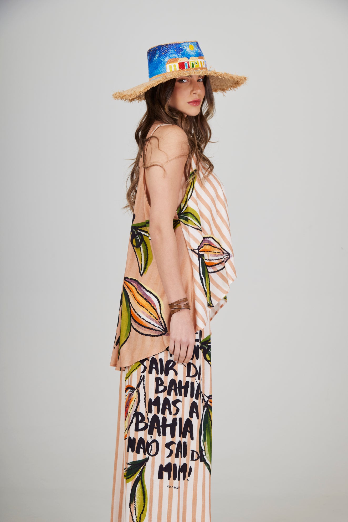 Bata Ampla Marrom Claro Estampado Listrado Coleção Bahêa Yacamim Q10