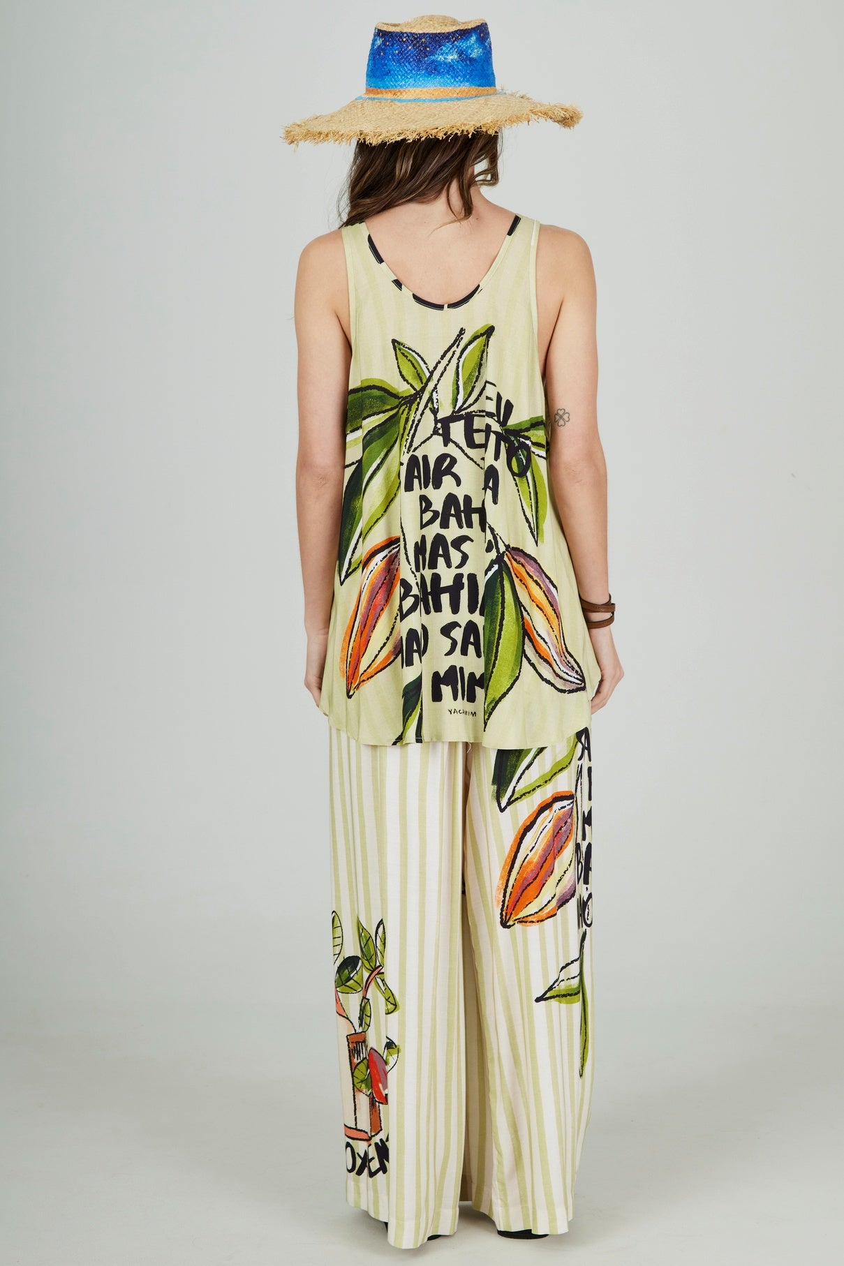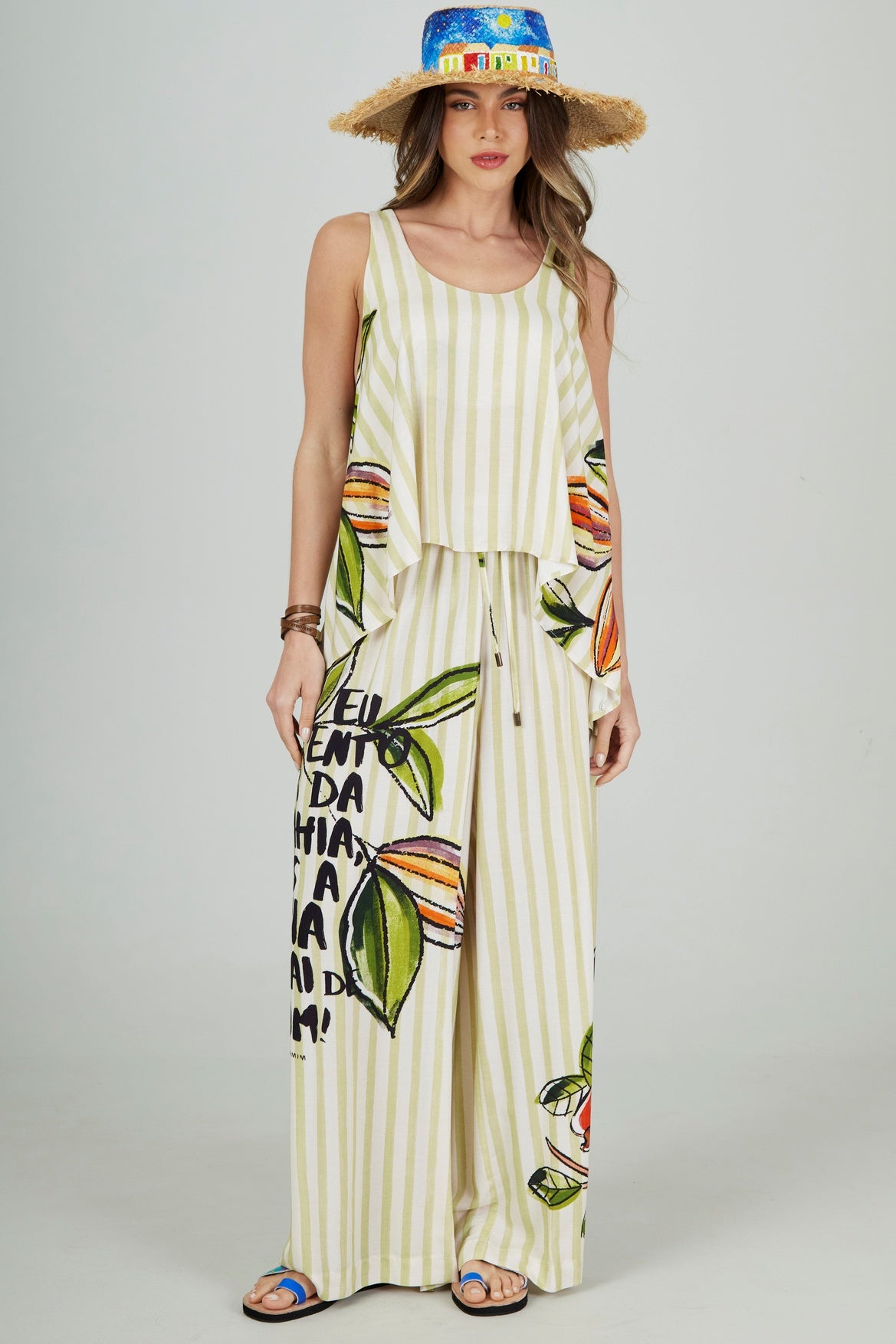 Calça Pantalona Verde Listrado Estampado Coleção Bahêa Yacamim R8