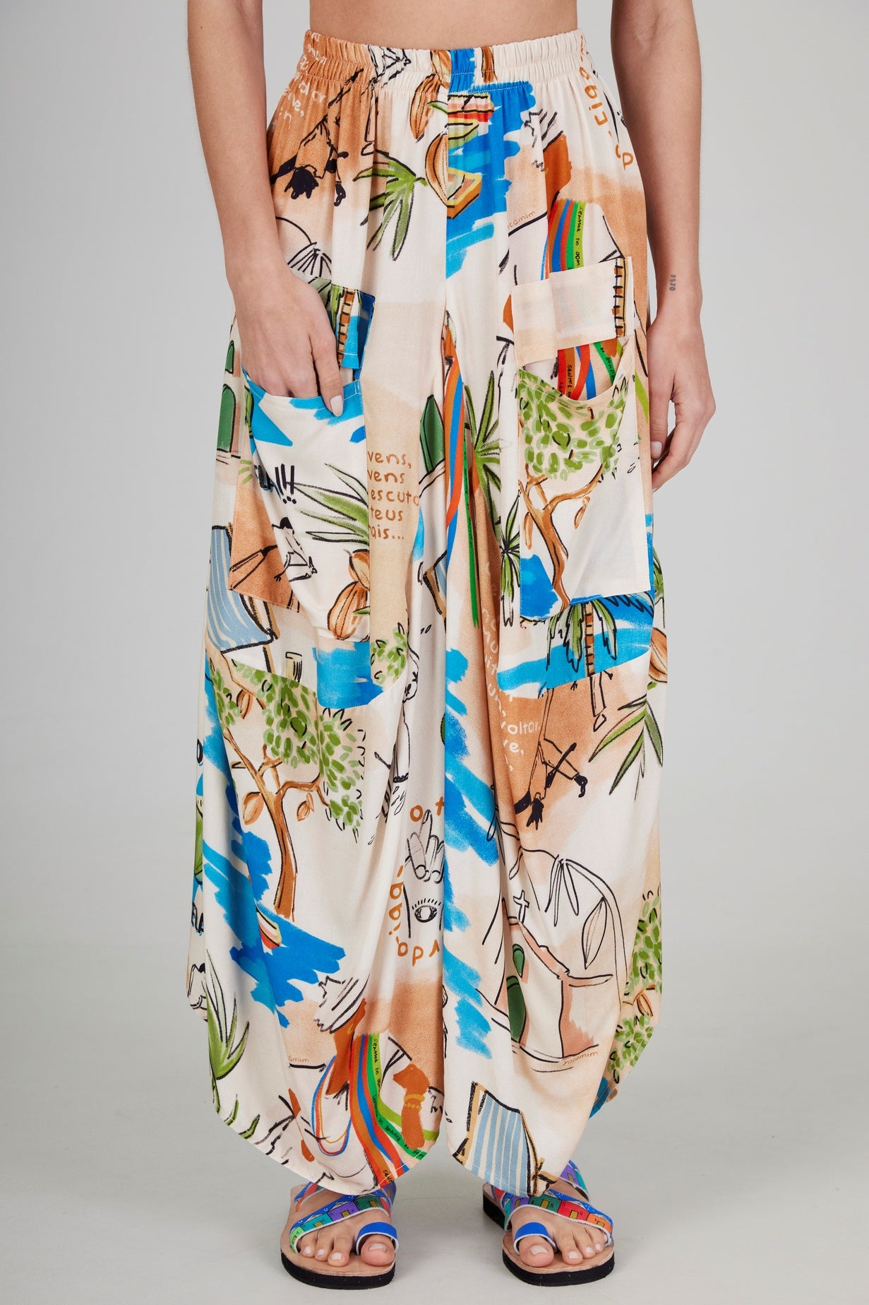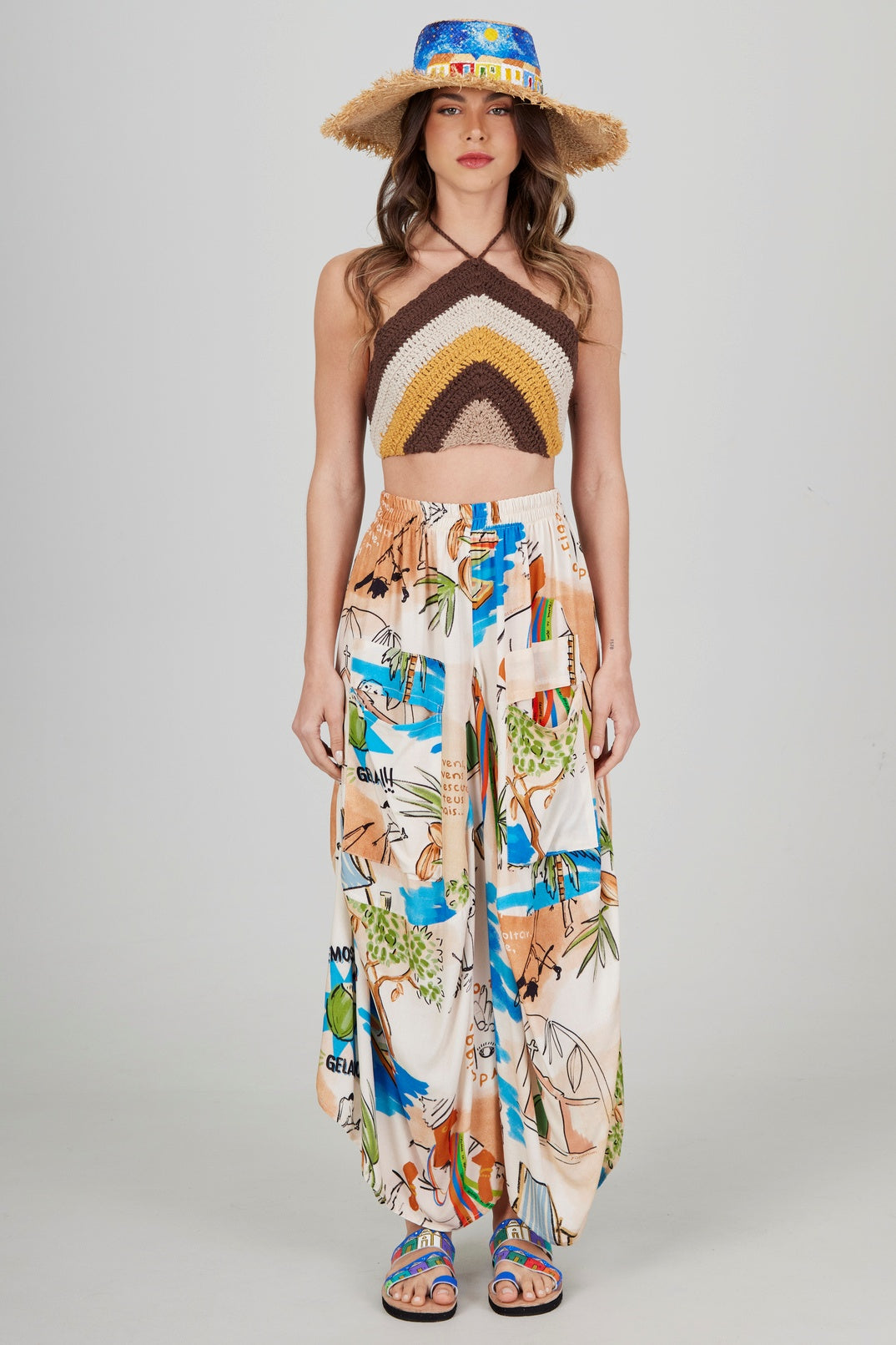 Calça Saruel Bege Estampada Coleção Bahêa Yacamim Q4