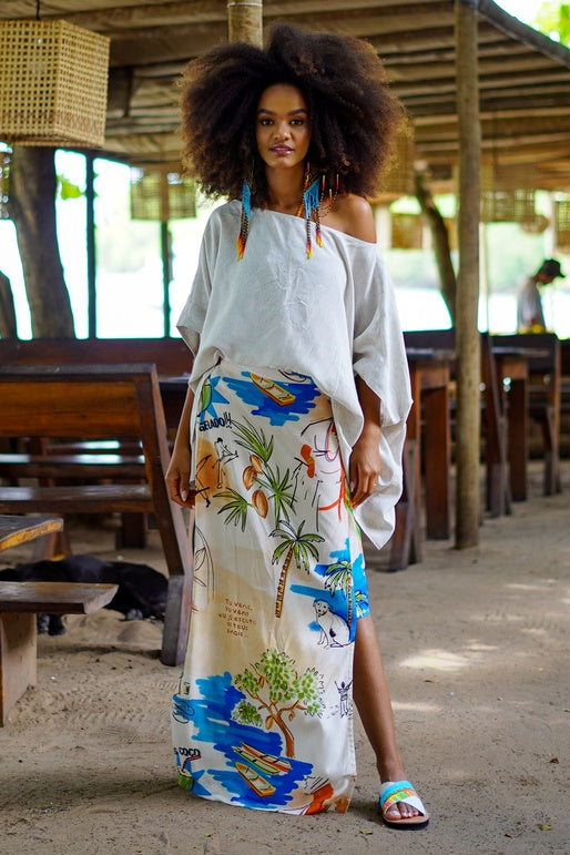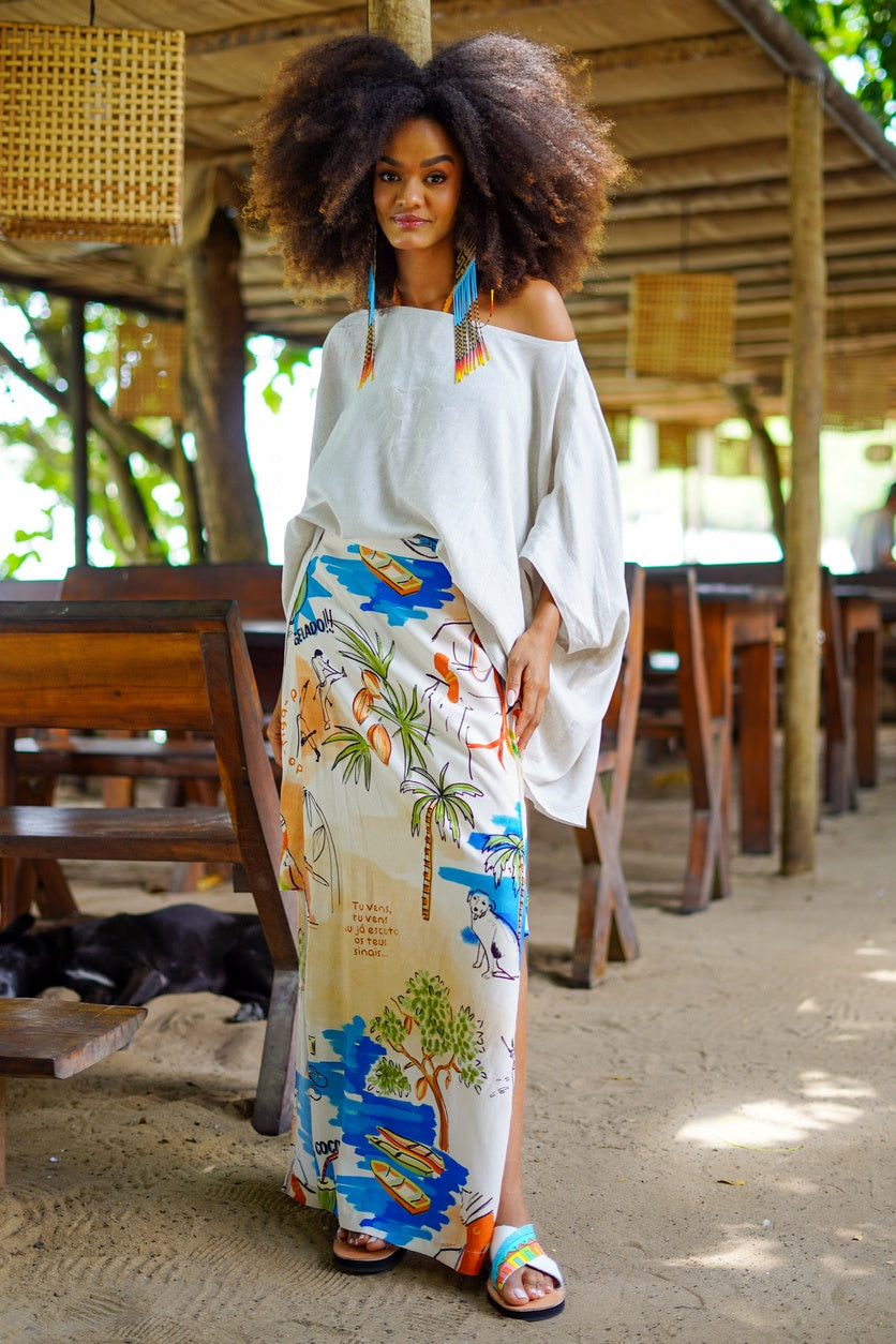 Saia Longa Bege Estampado Coleção Bahêa Yacamim R2