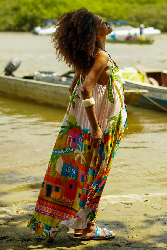 O Vestido Midi Alças Reguláveis Bege Estampado Coleção Bahêa Yacamim é a expressão perfeita da leveza e da feminilidade tropical. Com modelagem fluida e toque artesanal, o modelo apresenta alças finas ajustáveis, que proporcionam um caimento delicado e confortável, além de um babado na barra que confere movimento e elegância à peça. Confeccionado em 100% viscose, o tecido é leve, fresco e com toque suave, ideal para acompanhar os dias ensolarados com estilo e conforto.