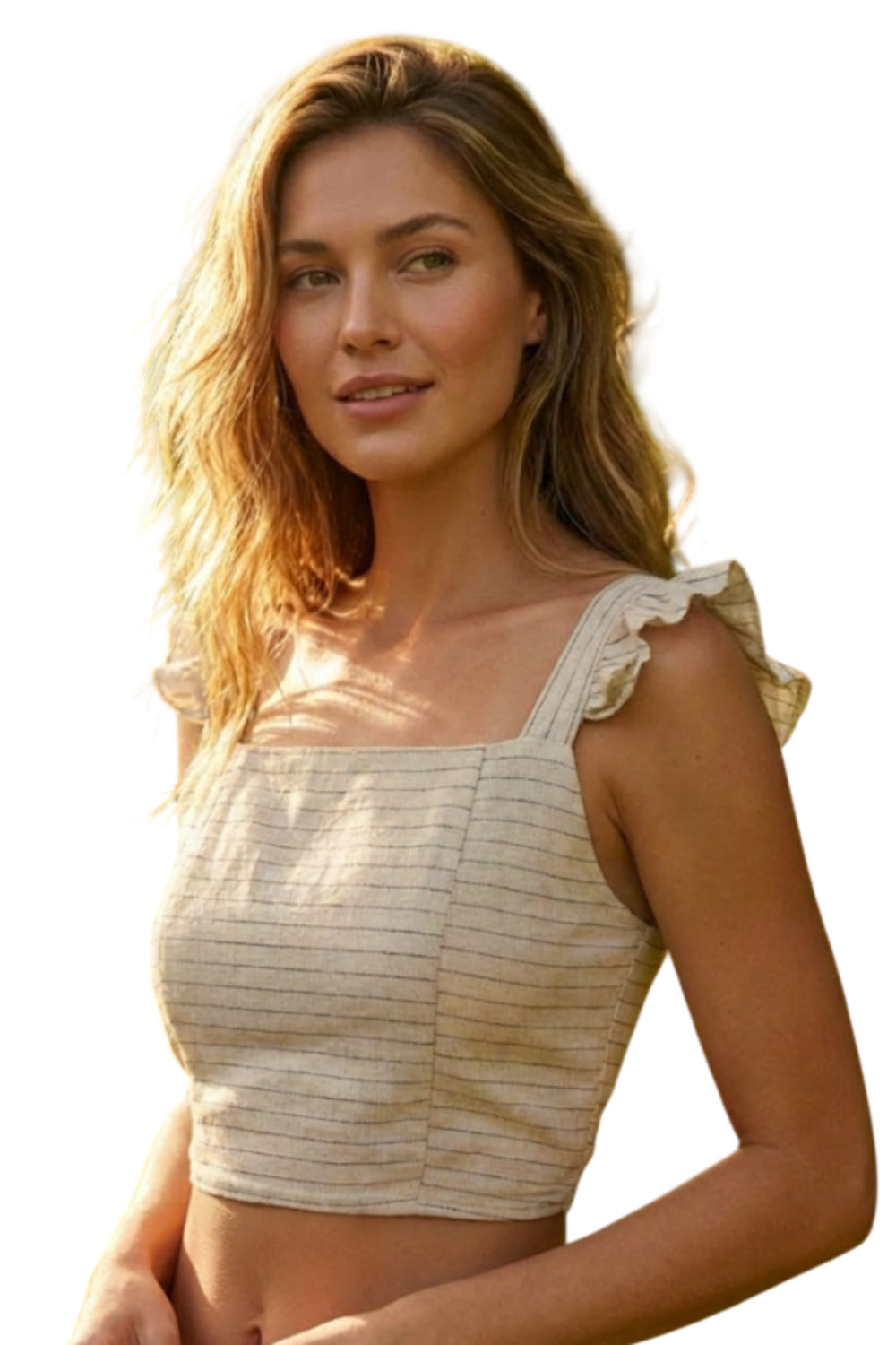 Confeccionado em 55% viscose e 45% linho, o modelo oferece toque natural, frescor e excelente respirabilidade, características ideais para dias mais quentes. As alças largas garantem conforto e sustentação, enquanto a amarração nas costas permite ajuste personalizado ao corpo. O detalhe de babadinho nas alças acrescenta delicadeza e um toque romântico ao visual.