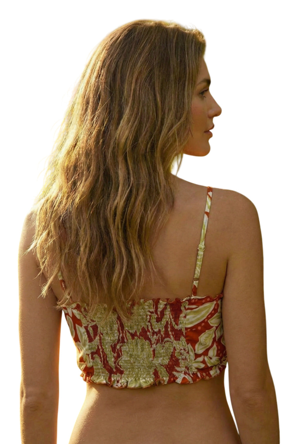 Top Faixa Com Alças Reguláveis Laranja Estampado Yacamim F2