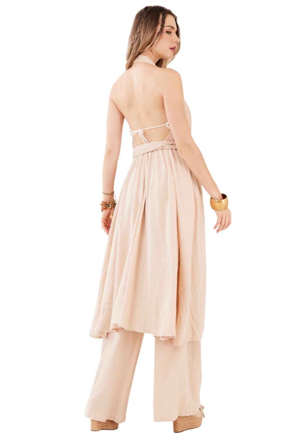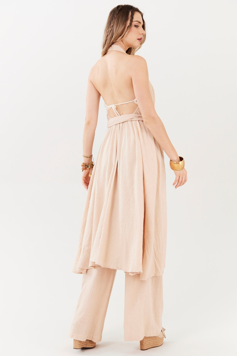 A tonalidade bege escuro reforça a proposta atemporal da peça, facilitando combinações com diferentes cores, estampas e acessórios. Produzido pela marca Yacamim, é um item 100% nacional, desenvolvido com cuidado nos acabamentos e atenção aos detalhes, refletindo a identidade artesanal e autoral da marca.