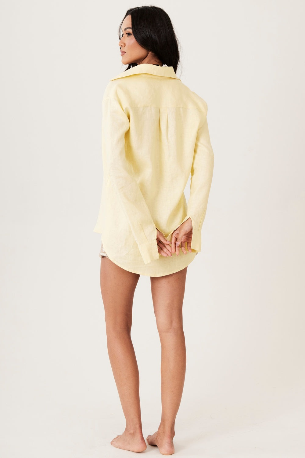 Camisa 100% Linho Cambraia Amarelo Yacamim A1