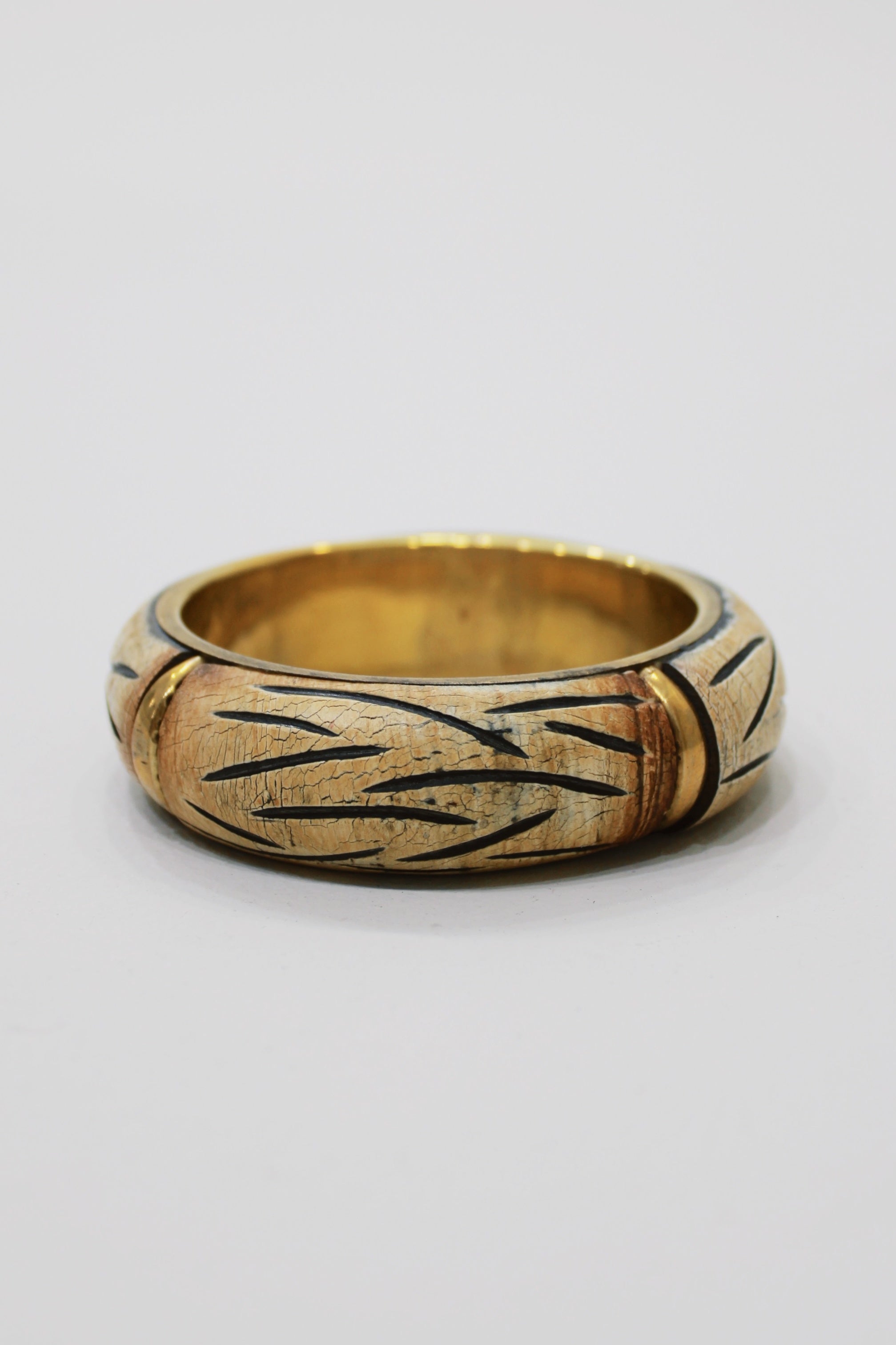 Pulseira modelo bracelete de metal com madeira. Produto revendido pela marca Yacamim.