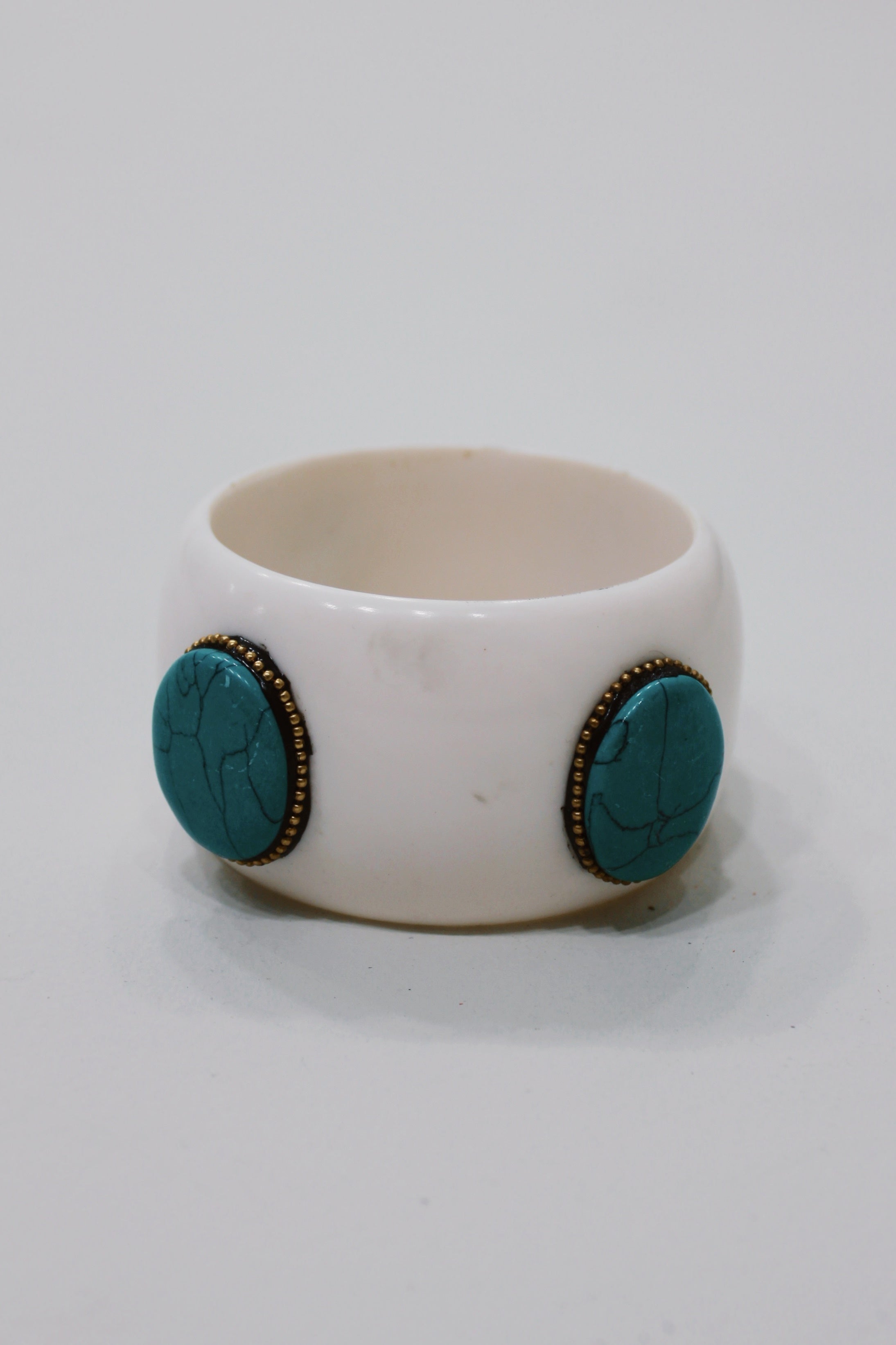 Pulseira modelo bracelete largo de cerâmica com pedras. Produto revendido pela marca Yacamim.