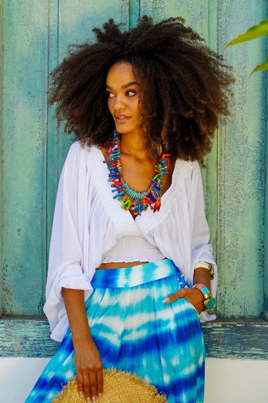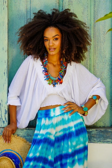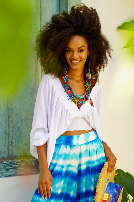 Confeccionada em 100% viscose, esta bata faz parte da coleção Yacamim Bahêa, trazendo o frescor e a essência natural do verão em uma proposta versátil e feminina. Ideal para compor looks leves e elegantes, seja com calças pantalonas, saias ou shorts, proporcionando estilo e conforto em qualquer ocasião.