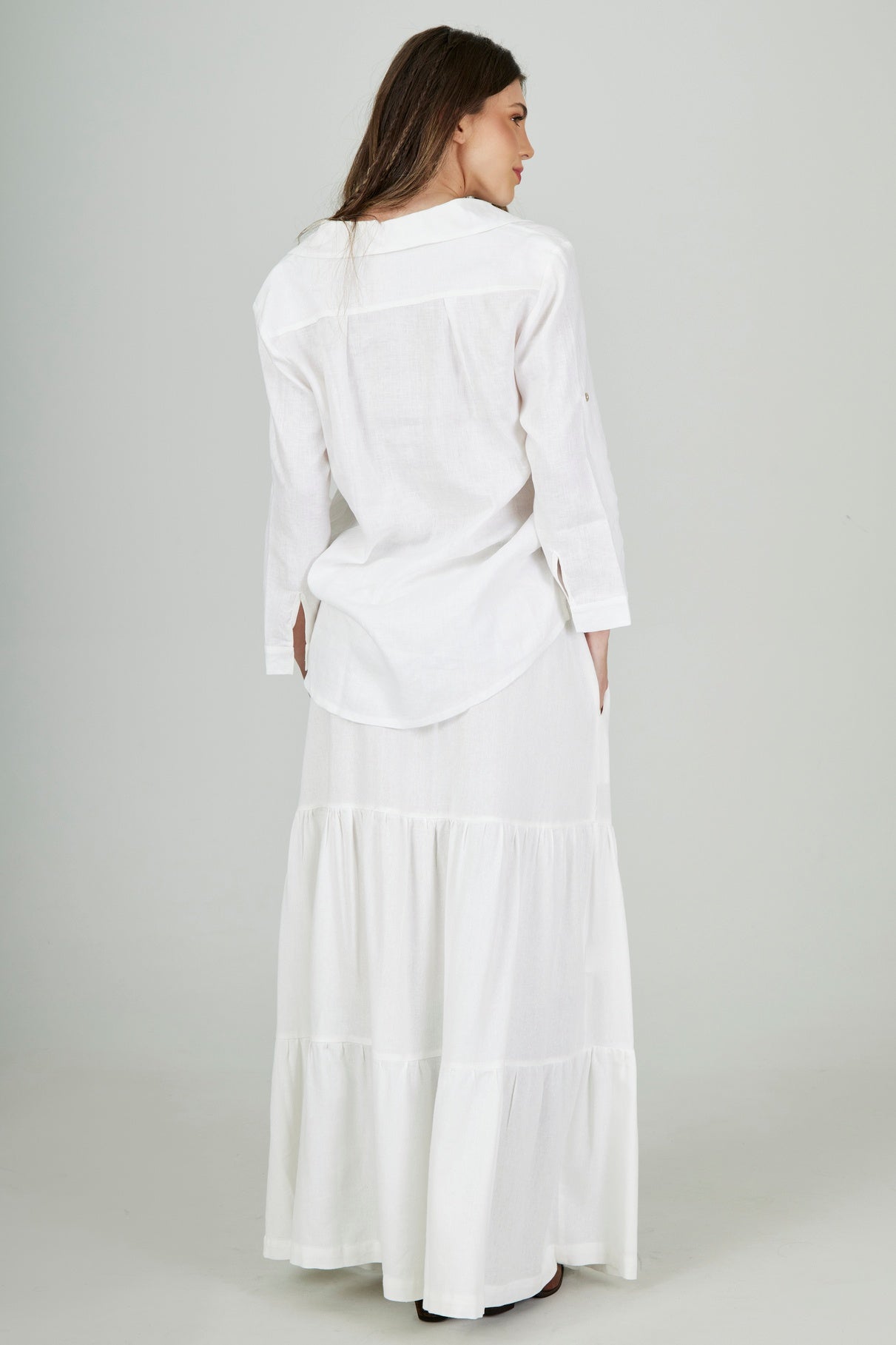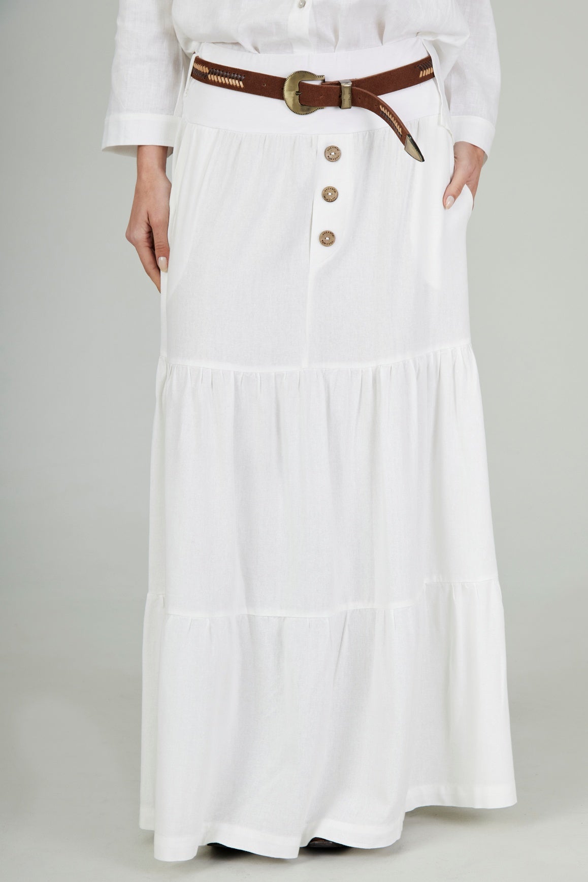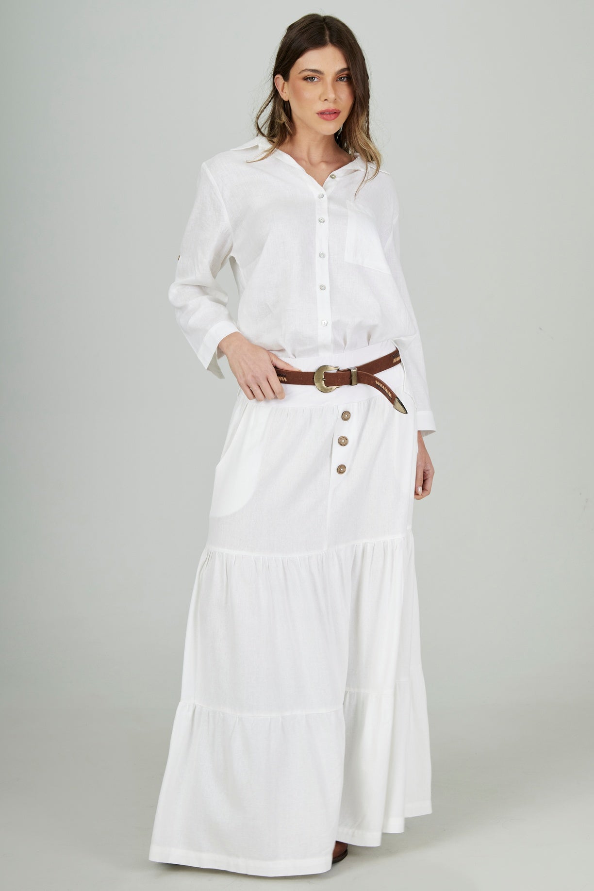 Saia Longa 3 Marias De Linho Com Cinto Trançado Branco Yacamim I1