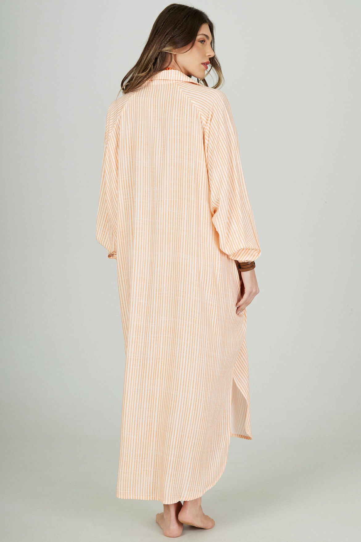 Chemise Longa Ampla Laranja Listrado Yacamim L4