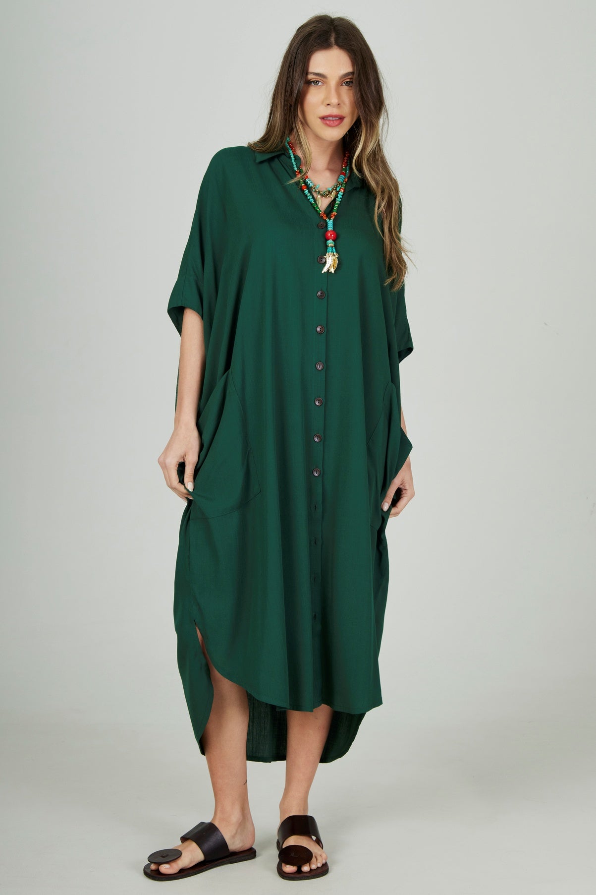 A Chemise Midi Verde Escuro Yacamim é a união perfeita entre elegância natural e conforto cotidiano.