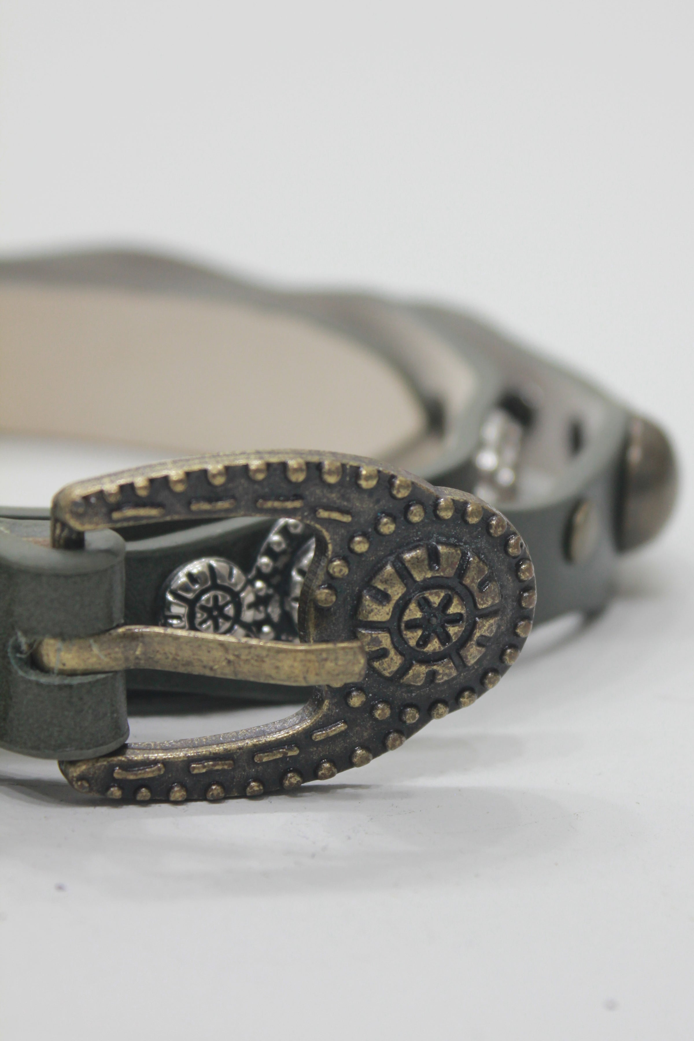 Cinto De Couro Verde Escuro Com Fivela Ouro Velho Yacamim #668