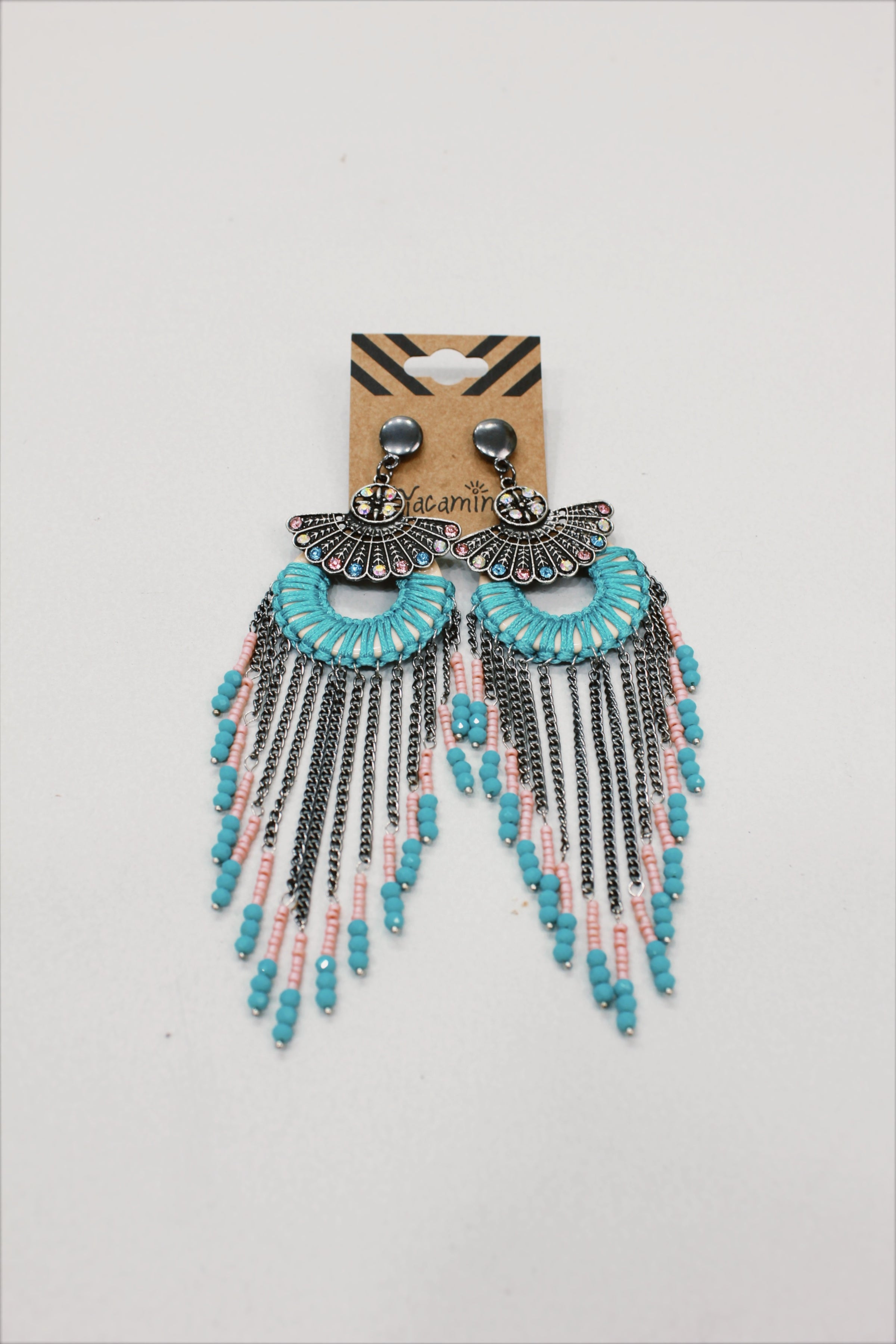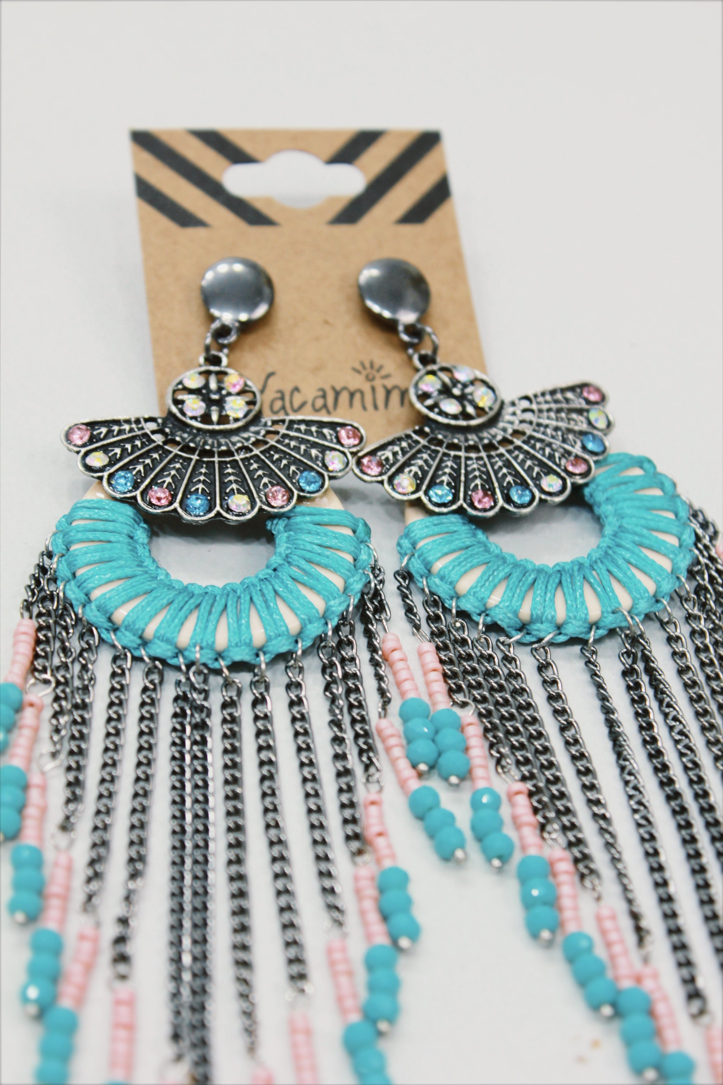Brinco De Miçangas E Macramê Verde E Rosé Yacamim #611