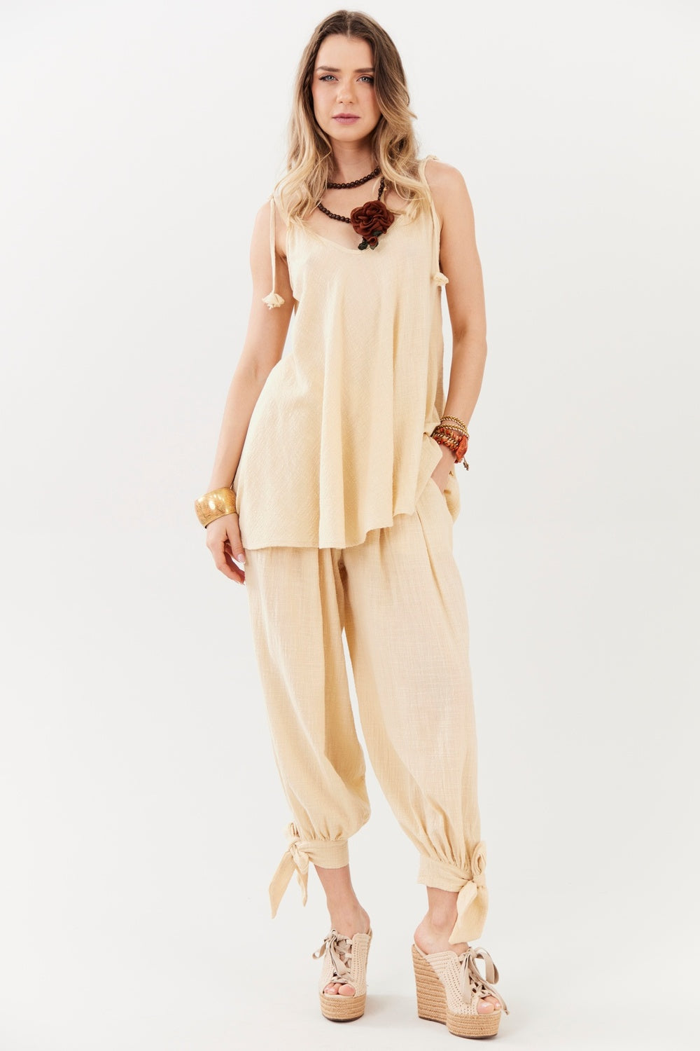 Calça Aladim Gaze Marrakesh Bege Yacamim A30
