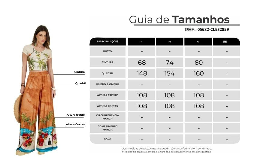 Com estampa exclusiva da coleção Yacamim Bahêa, a calça traduz a essência da marca em cores suaves e detalhes inspirados na beleza natural e cultural do nordeste. Ideal para produções casuais ou sofisticadas, ela pode ser combinada com croppeds, batas ou camisas, criando visuais versáteis e cheios de estilo. Confeccionada em malha leve de viscose com elastano (94% Viscose e 06% Elastano), possui toque macio, excelente caimento e elasticidade que favorece o conforto em todas as ocasiões.