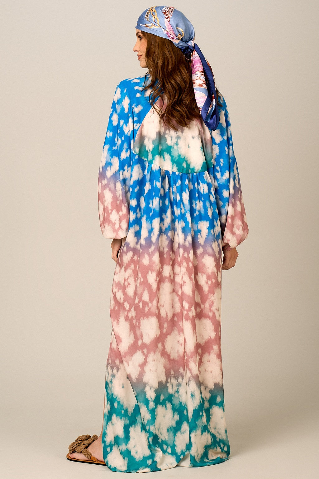 A Chemise Longa Ampla Azul Rosê e Verde Degradê Yacamim é uma peça sofisticada e elegante, perfeita para quem busca leveza com estilo. Seu caimento fluido e modelagem ampla garantem conforto, enquanto as mangas longas bufantes adicionam um toque romântico e feminino. As fendas laterais proporcionam movimento e os botões em madrepérola completam o visual com um acabamento delicado e refinado.
