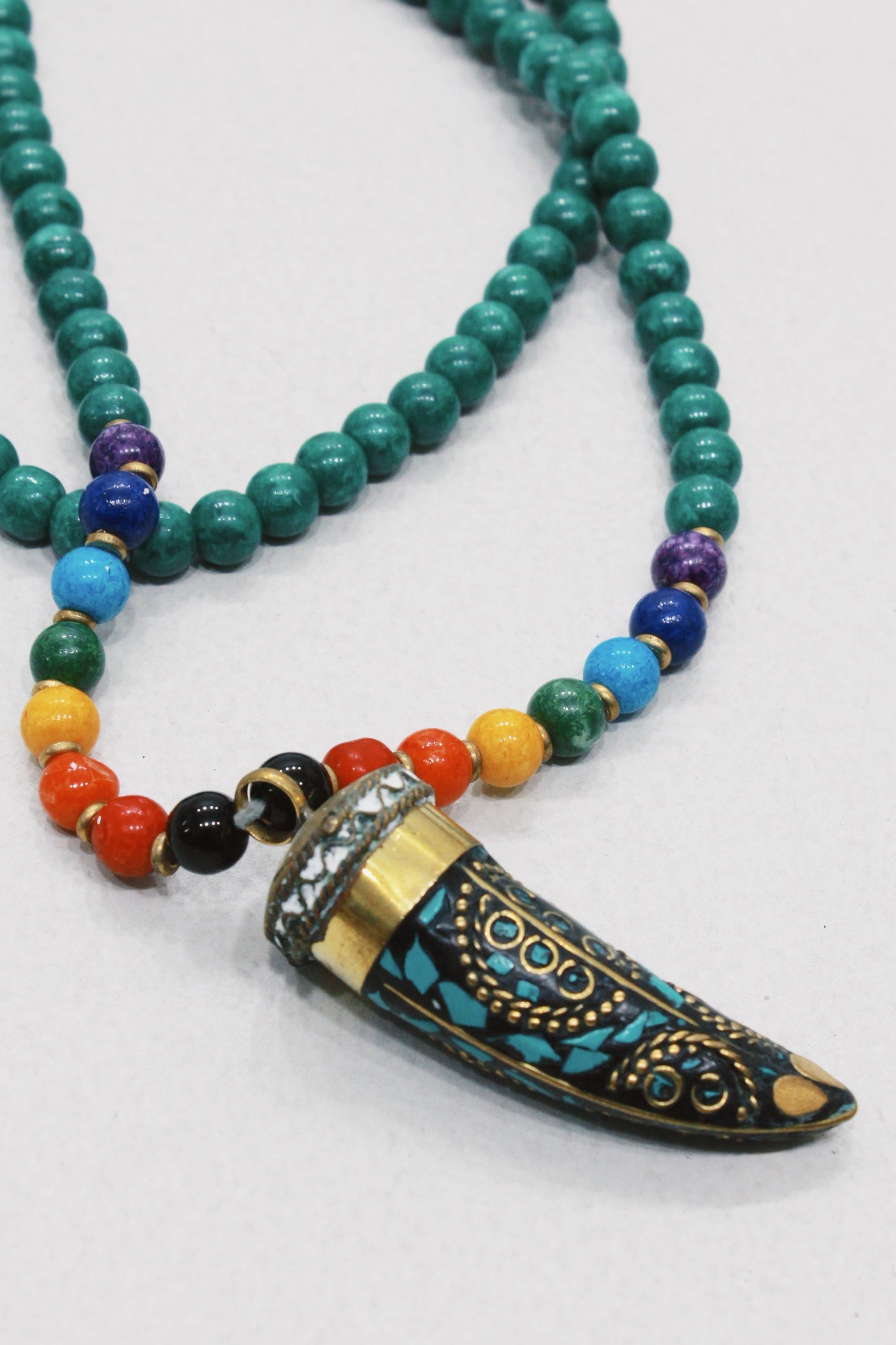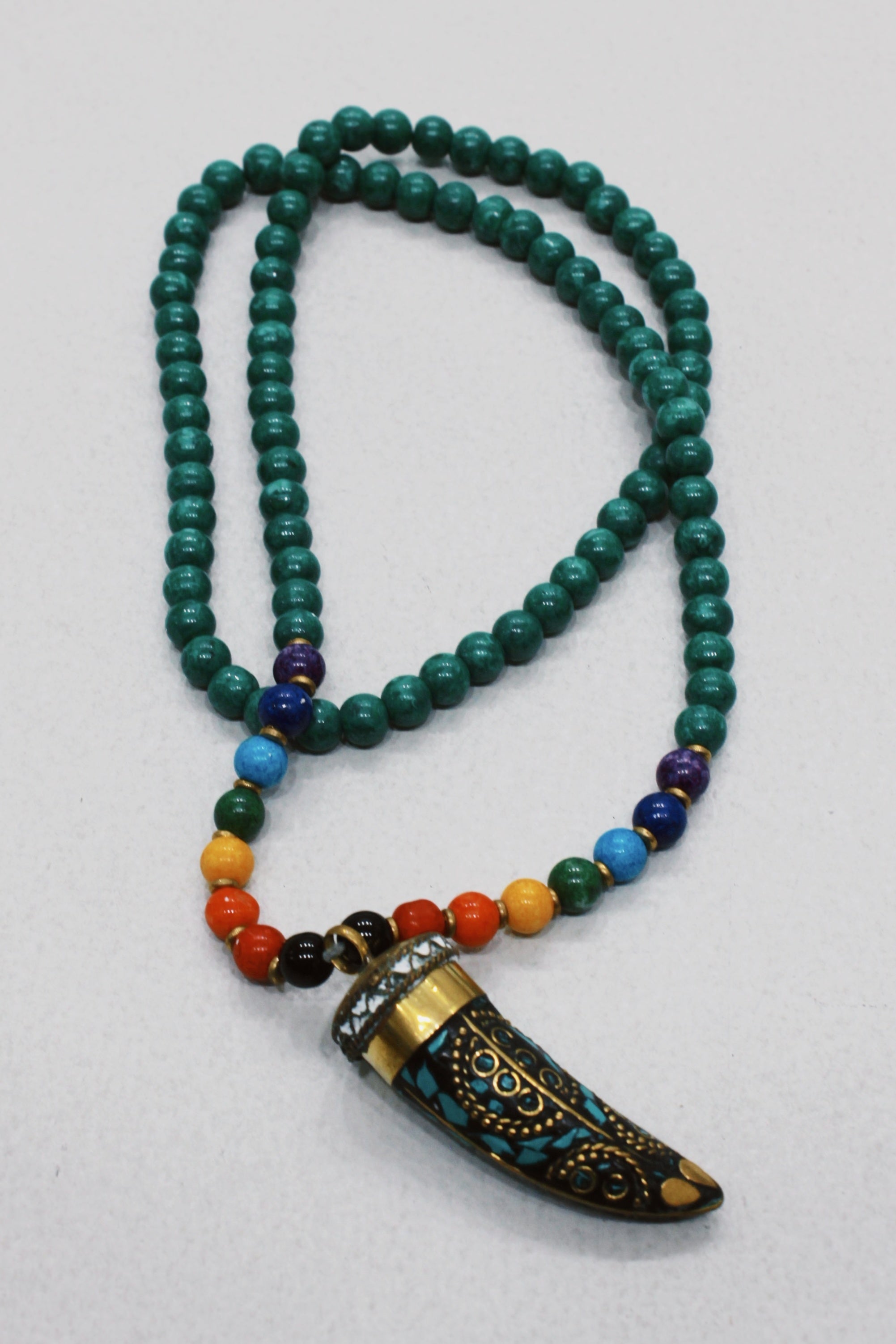 Colar Artesanal Com Pingente De Dente De Metal Verde Yacamim #622