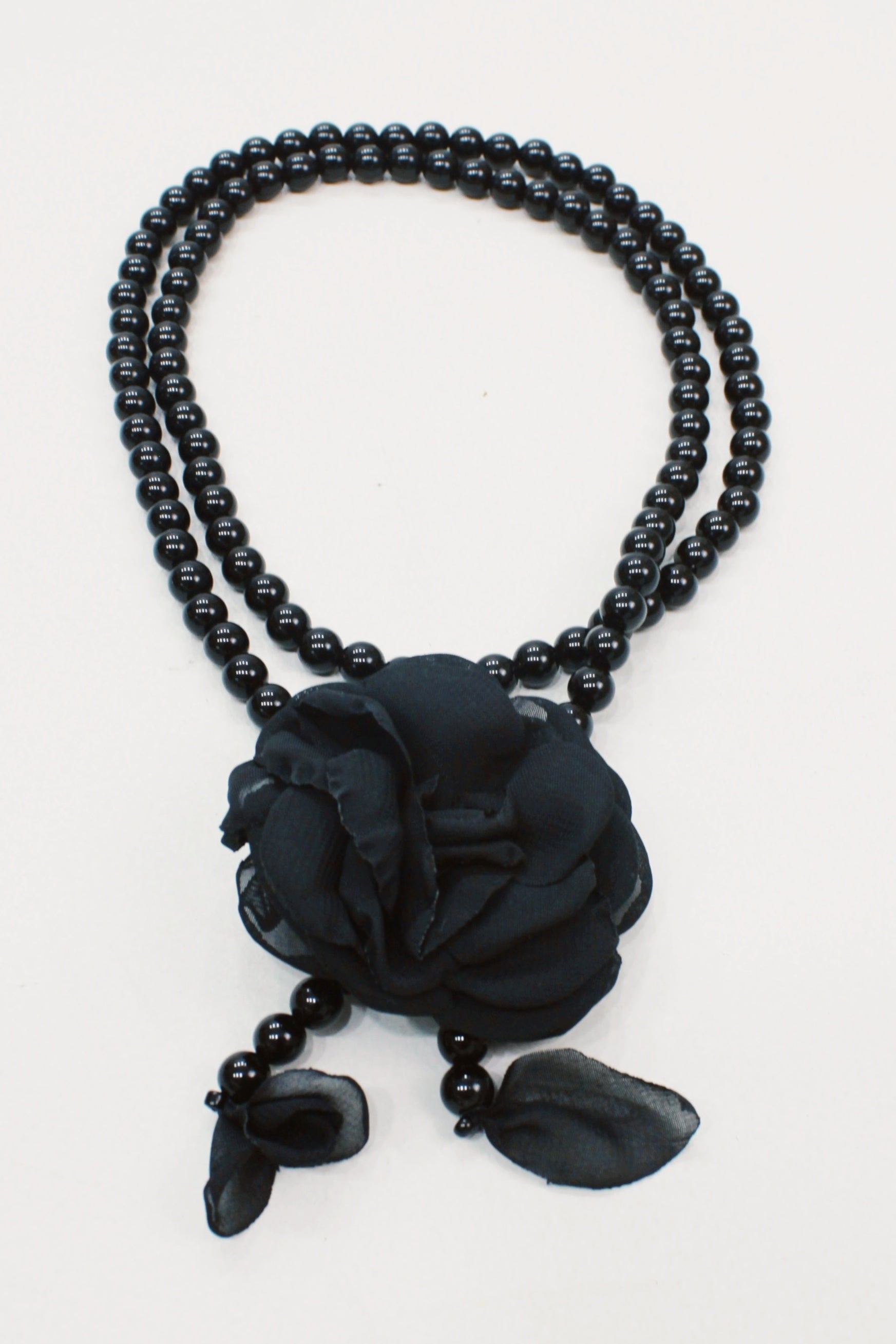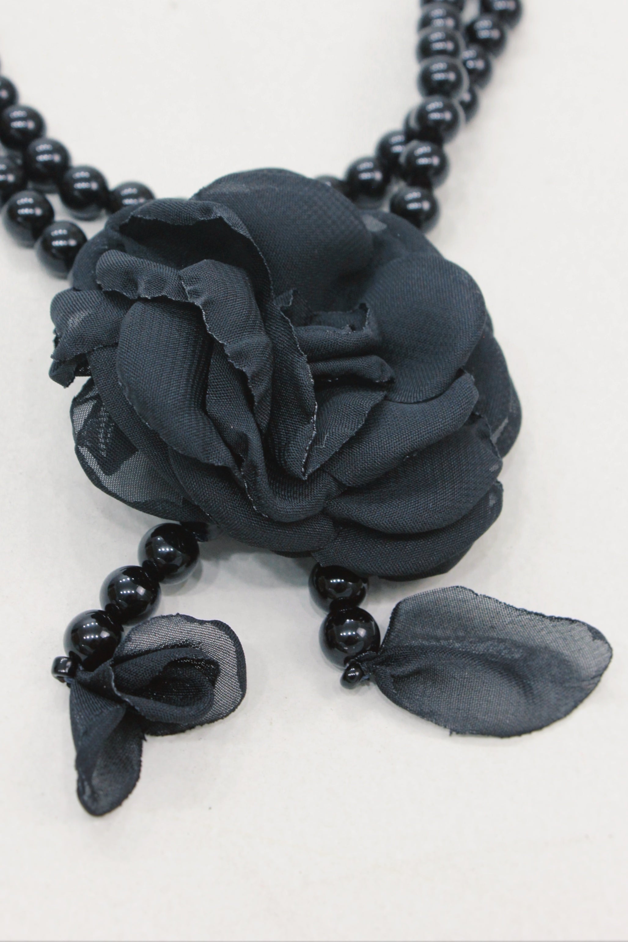 Colar Ave Maria Com Flor Preta Yacamim #594