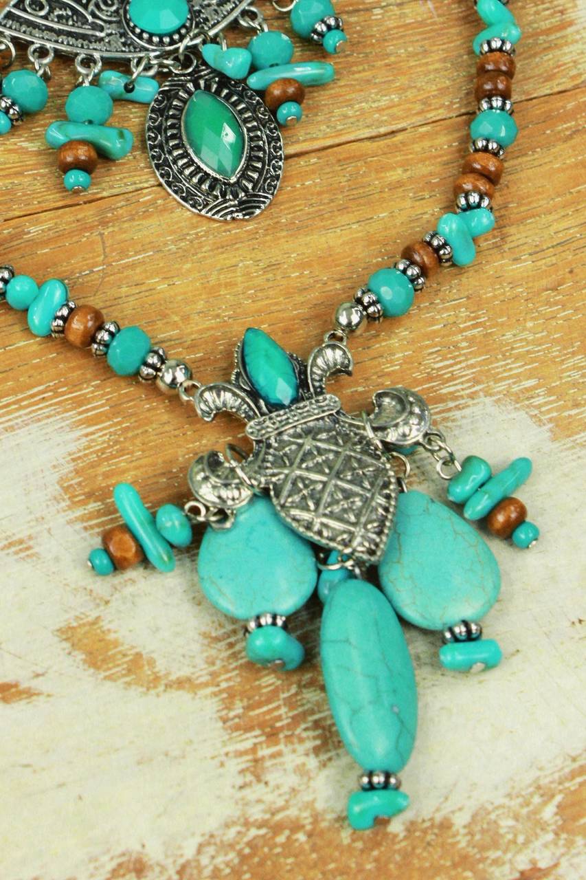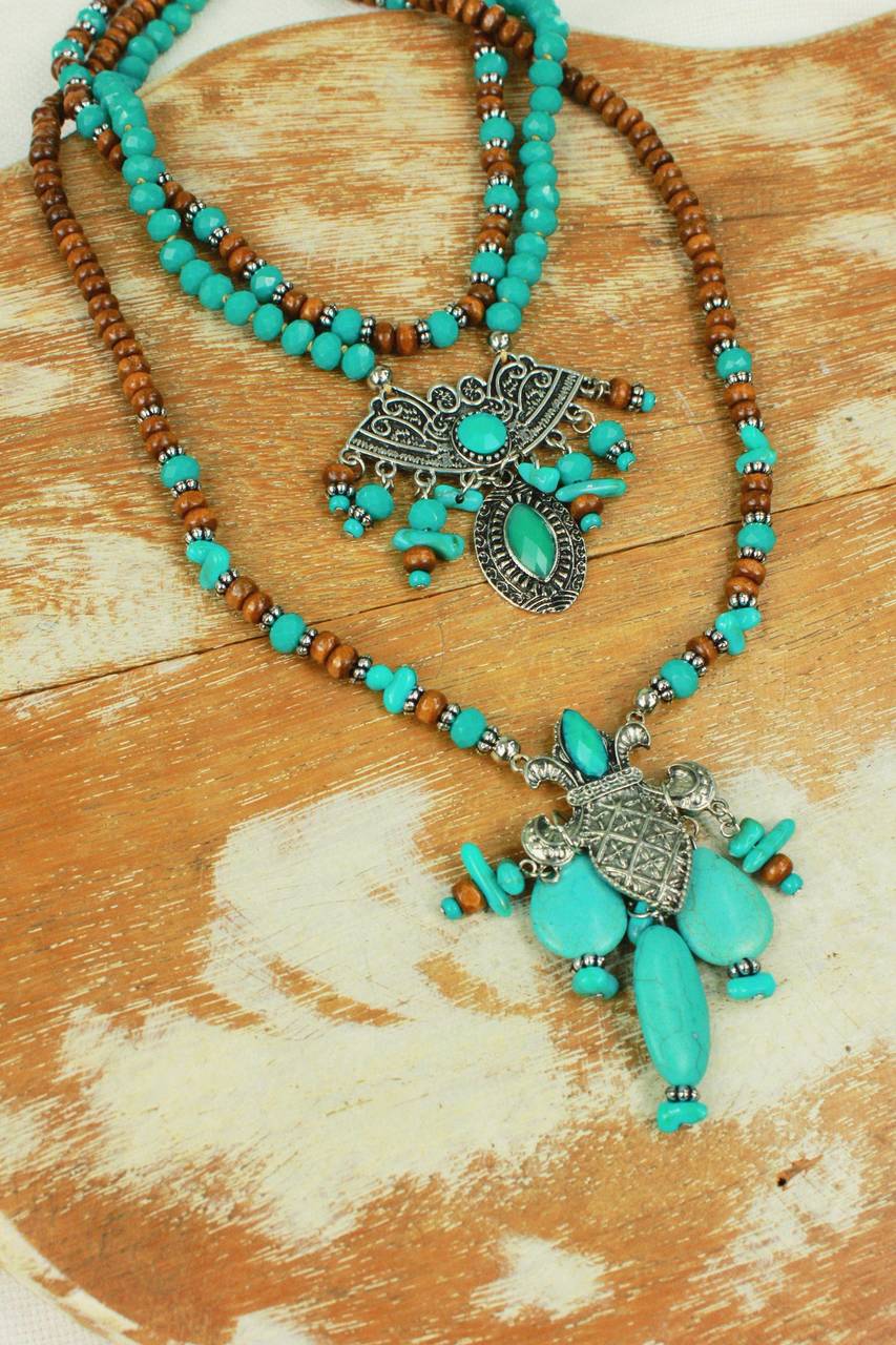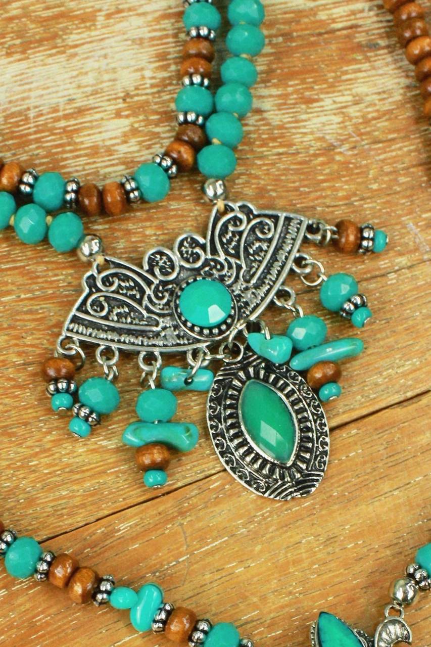 Colar Com Miçangas De Madeira E Pedras Verdes Yacamim #429