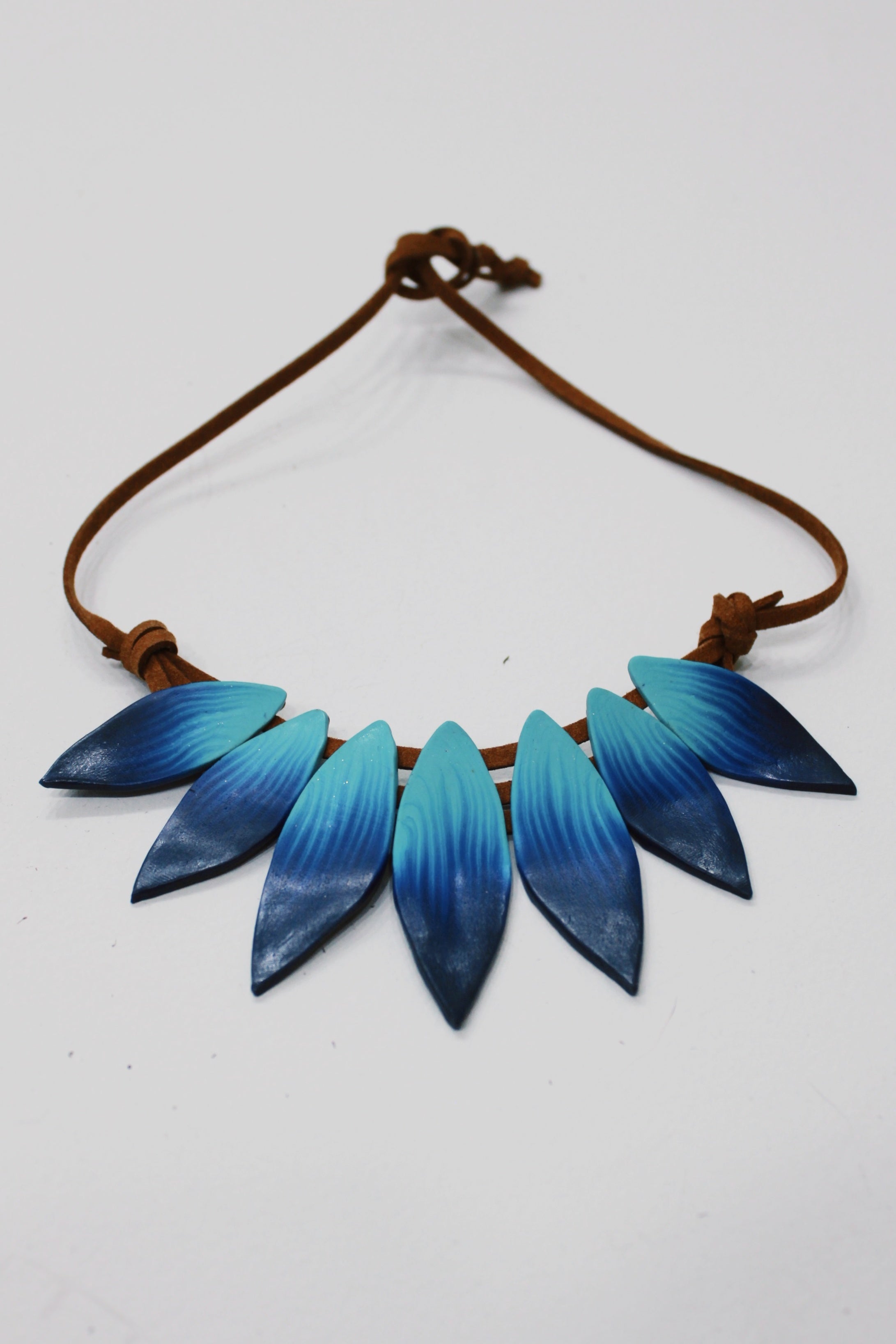 Colar de fimo com formato de cocar. Produto revendido pela marca Yacamim.