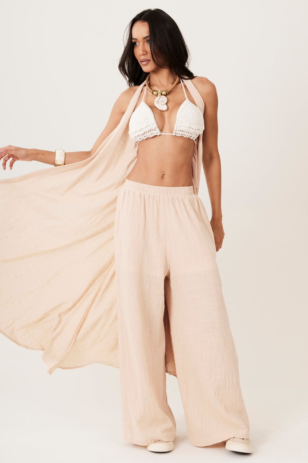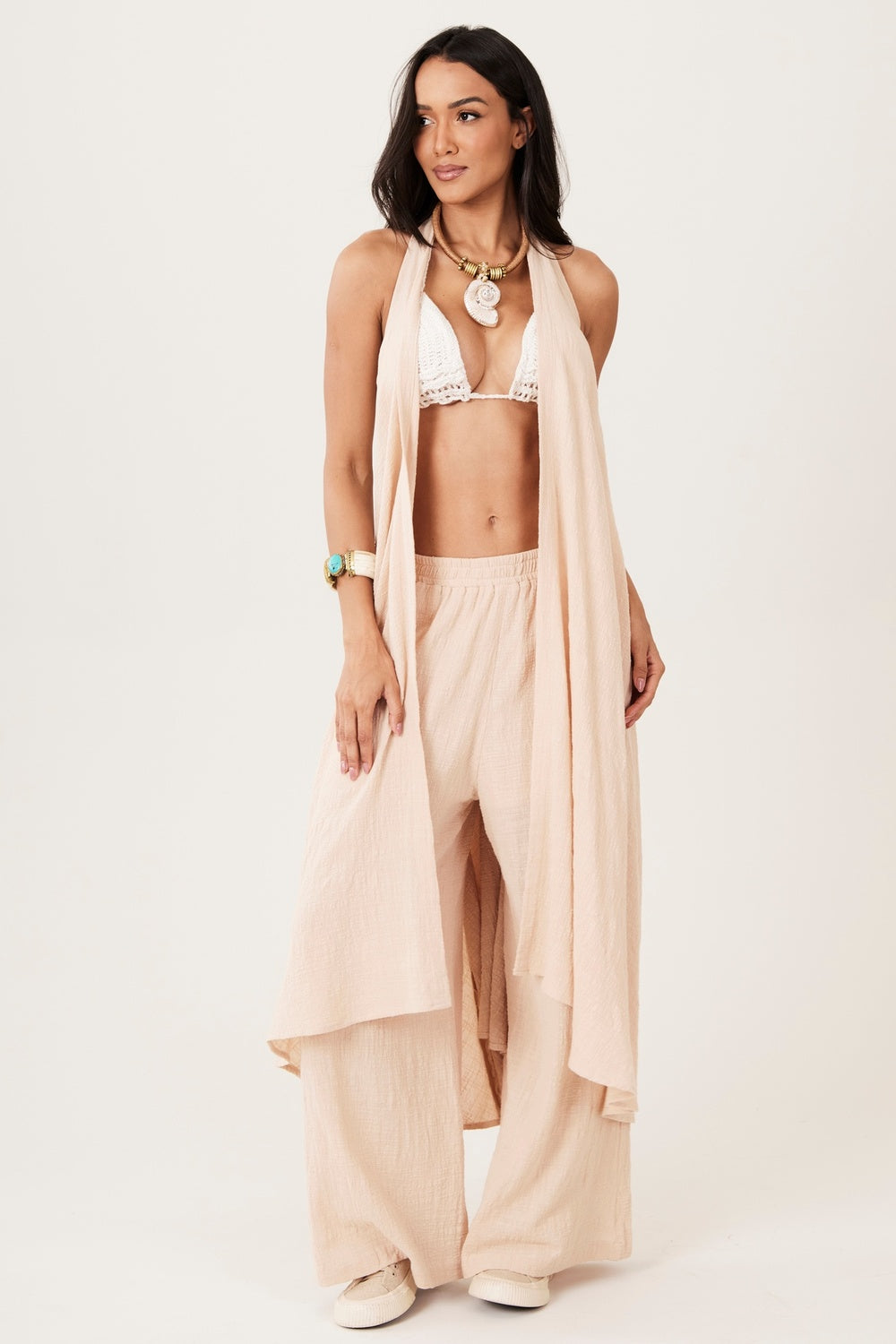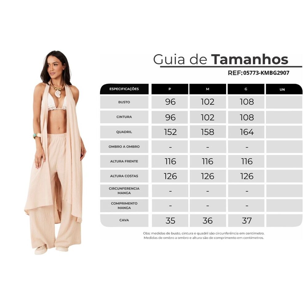 Kimono Frente Única Sem Mangas Bege Escuro Yacamim I6