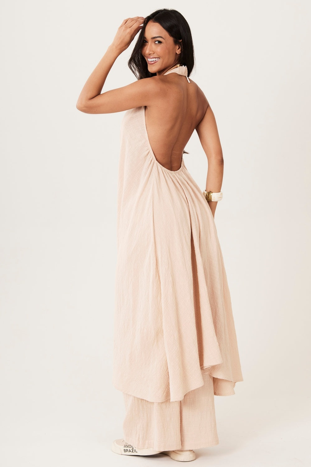 A tonalidade bege escuro reforça a proposta atemporal da peça, facilitando combinações com diferentes cores, estampas e acessórios. Produzido pela marca Yacamim, é um item 100% nacional, desenvolvido com cuidado nos acabamentos e atenção aos detalhes, refletindo a identidade artesanal e autoral da marca.