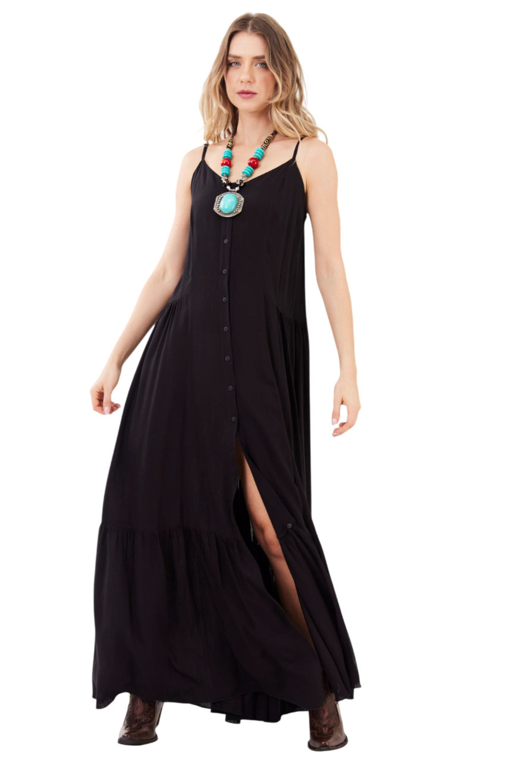 Vestido Longo De Alças Reguláveis Preto Yacamim C2