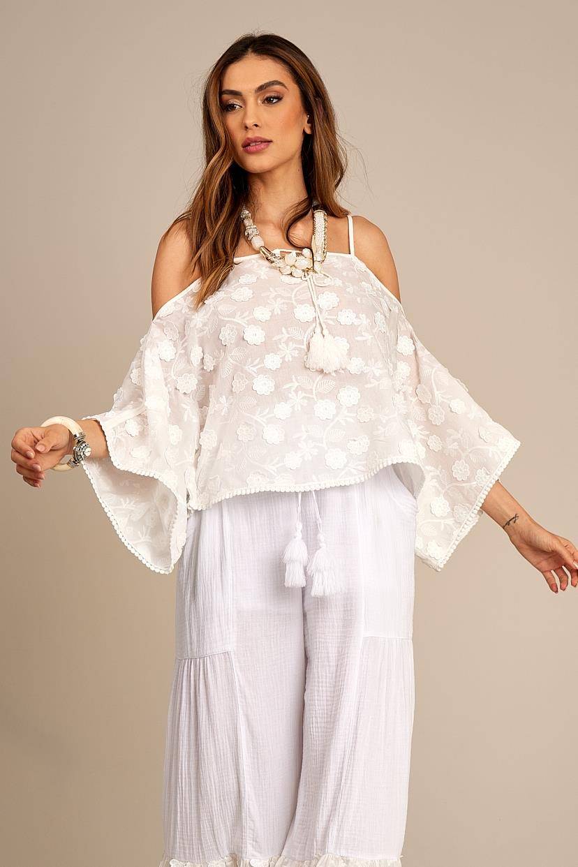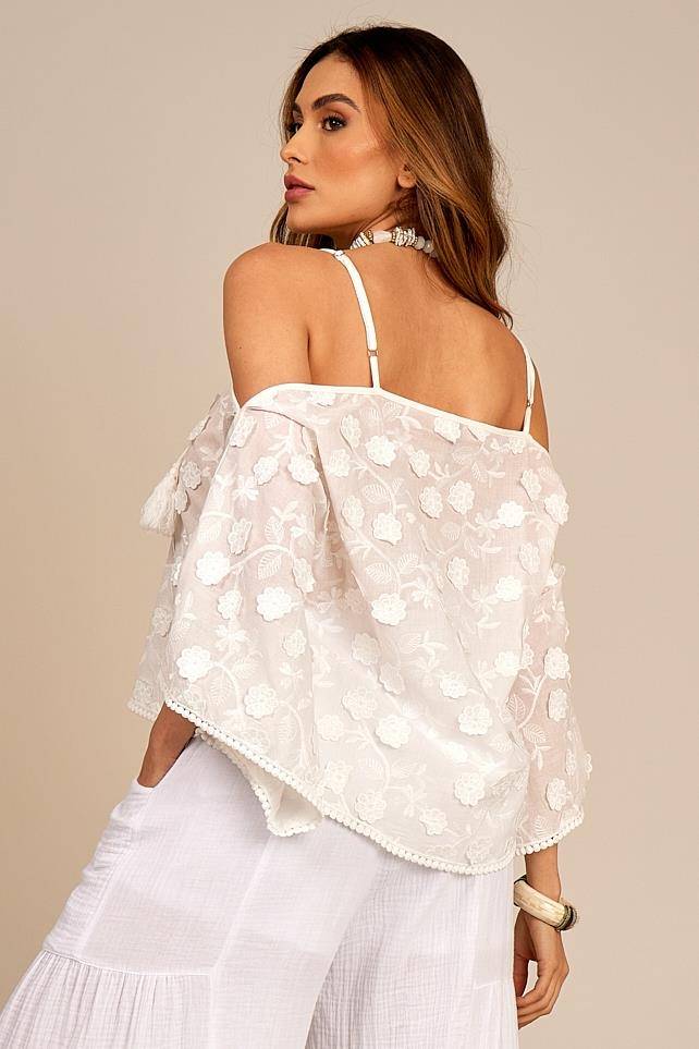 Bata Com Alças Reguláveis E Flores Bordadas Branca Yacamim