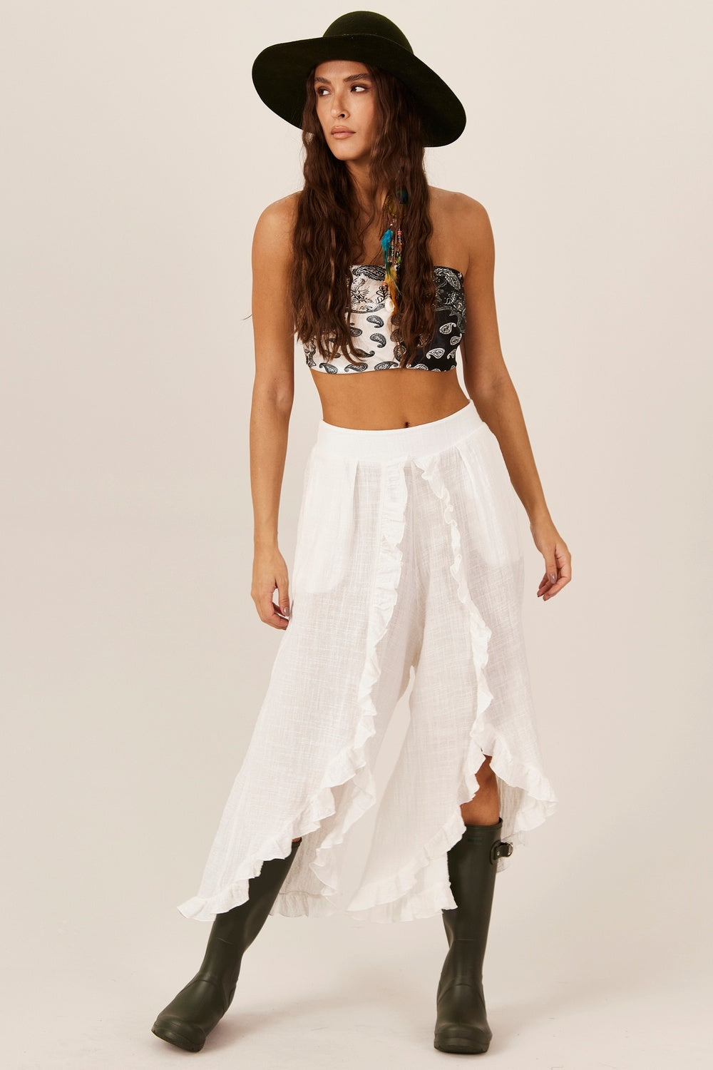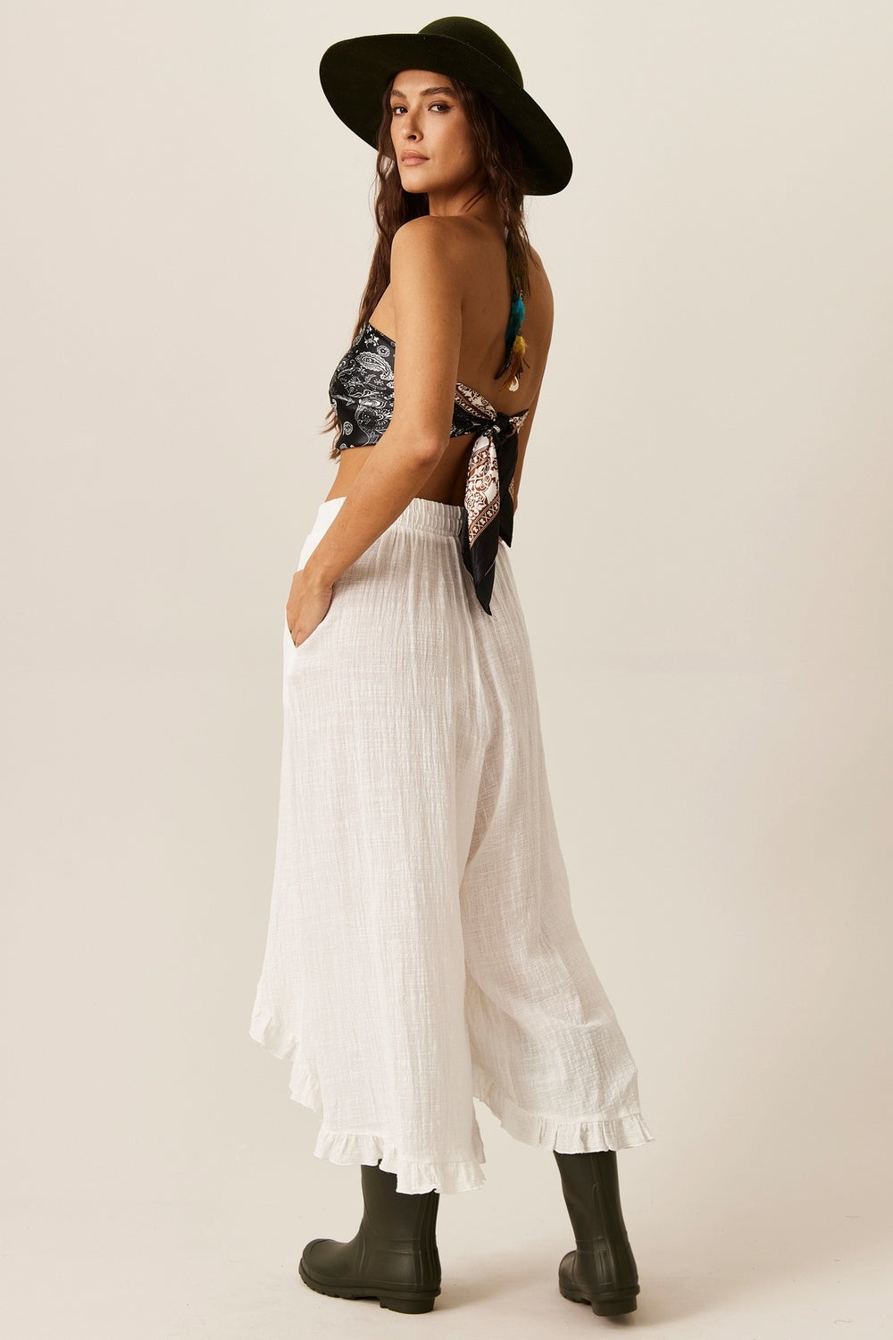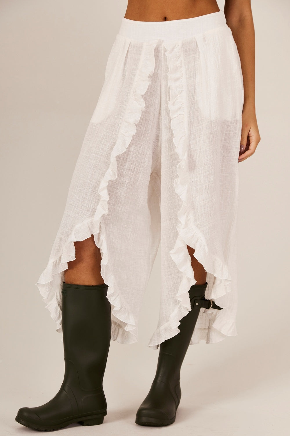 Calça Com Babados E Bolsos Branca Yacamim G7